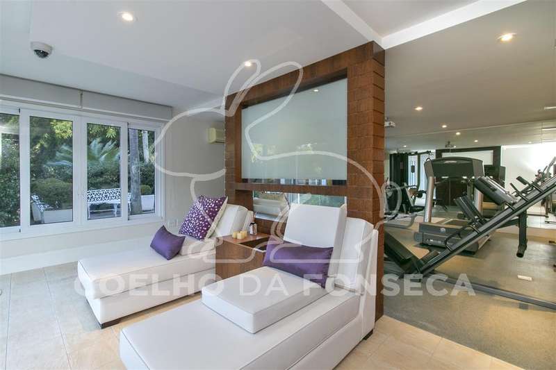 No piso inferior fica a área de lazer, composta pela piscina climatizada, com raia de 25 m e jacuzzi, sala de ginástica super equipada, sala de massagem, sauna seca e a vapor, banheira de hidromassagem para pelo menos 6 pessoas, sala de descanso avarandada que dá vista para o jardim, campo de futebol Society e é claro uma completíssima área gourmet. Toda essa área é servida por elevador individual, que leva para o nível térreo.