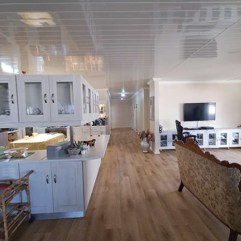 a Jewel situated in the sought-after area of Van Riebeeck Park in Worcester, Westen Cape. On entering from the front door a spacious open plan connecting the lounge, dining area and fasionable kitchen welcomes you. The built in fireplace in the lounge is just perfect for the area's cold winters. Entering via the garage the scullery/laundry adjacent to the kitchen adds convenience to the overall draughtsmanship design. The property further offers thee bedrooms, main bedroom with en-suite and walk in closet, remaining two bedrooms with built in wardrobes, an additional full bathroom, a closed garage as well as a tandem garage with parking space for four vehicles. The overall feature of this property is comfort, space and style..