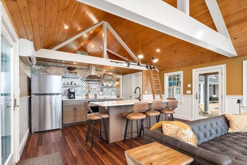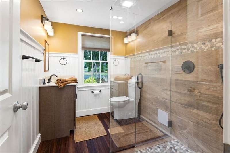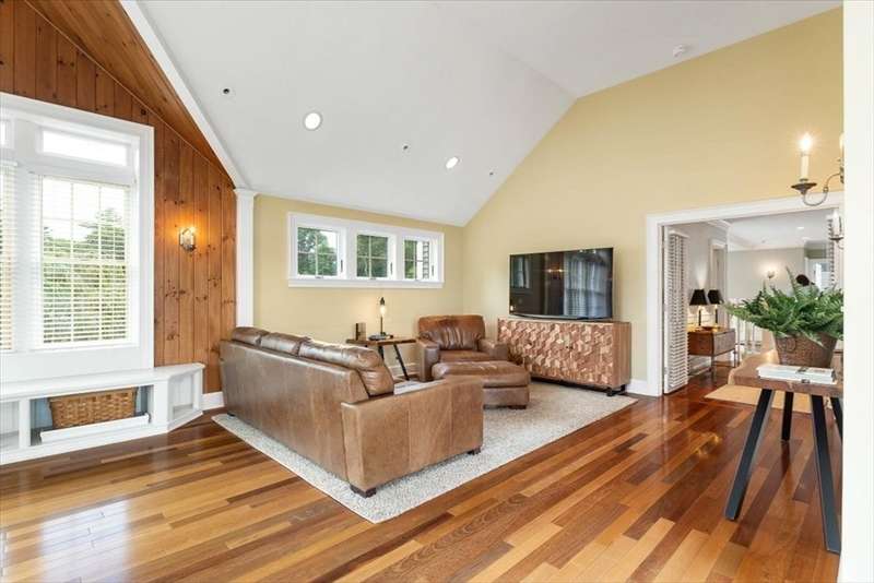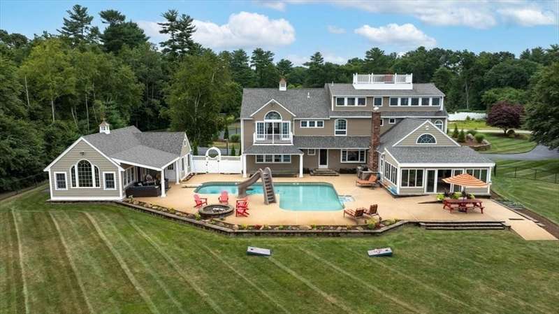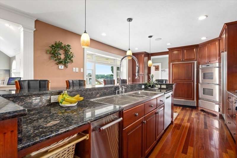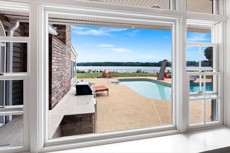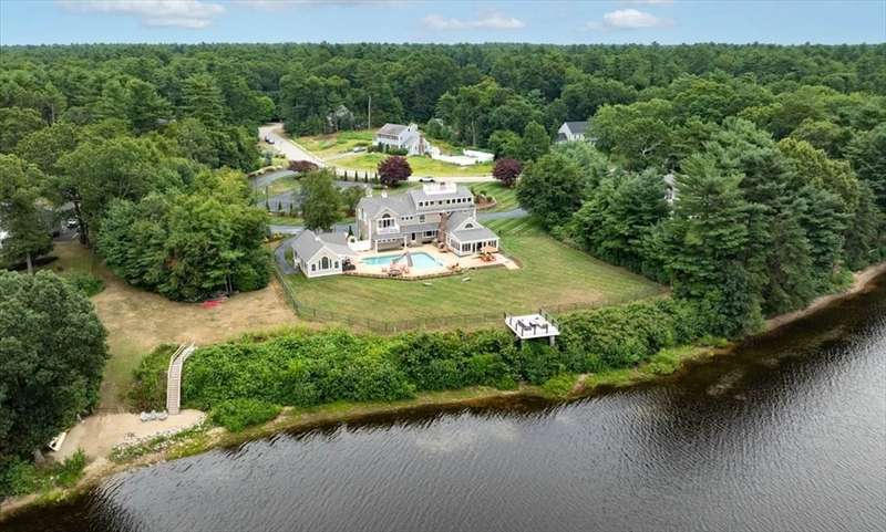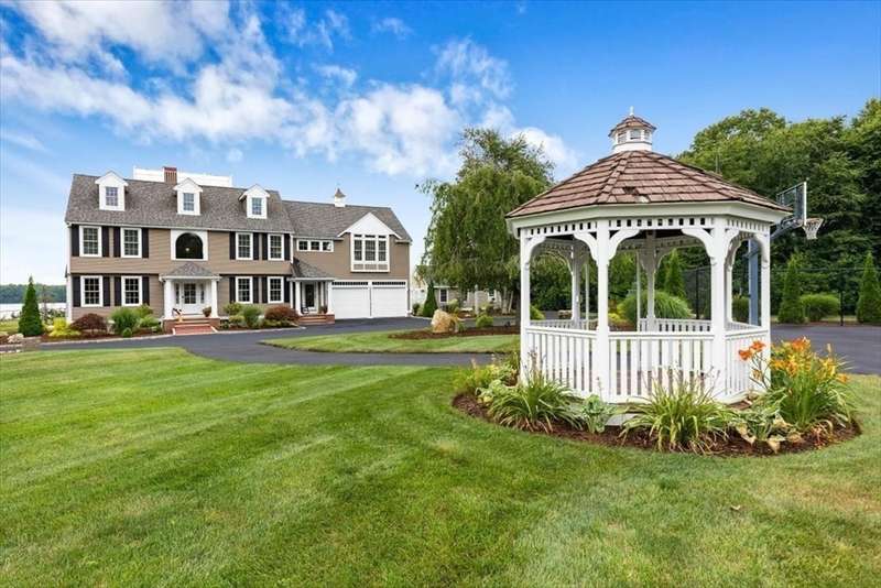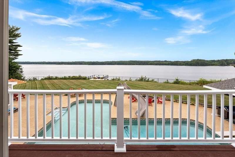 Experience the grandeur of this spectacular, private lake front estate with panoramic views of Silver Lake. Main house has 6 options for bedrooms, 5 1/2 baths, 4 season room with incredible views. Additional "Pool Cabana" with kitchen, gorgeous living room, full bath, loft & flex space. Extremely well designed granite kitchen will bring out your inner chef with 12 foot island with seating, top of the line appliances. Custom inground L-shaped16X40 heated saltwater pool & heated 7X12 swim spa. Grand main suite with sitting room. Outdoor kitchen with granite top, built-in grill and fridge are brand new. Additional 1/2 bath for pool area. Watch the gorgeous sunset on lakeside deck or private beach. Widow's walk roof top viewing deck. Full tennis/sport court. All situated on a 2.4+ acre double lot. Deep Artesian Well. Hardwoods throughout. Many handicapped accessible features. Property being sold furnished, move right in! Make your appointment to view this south shore gem today!