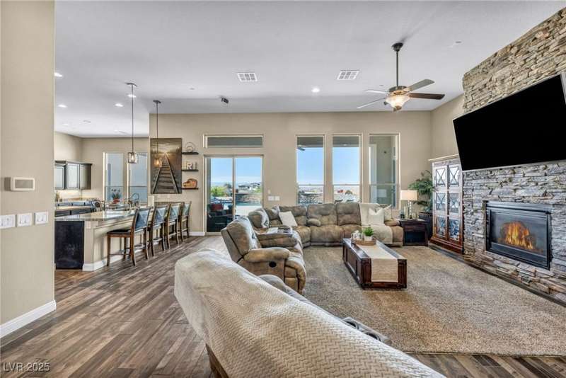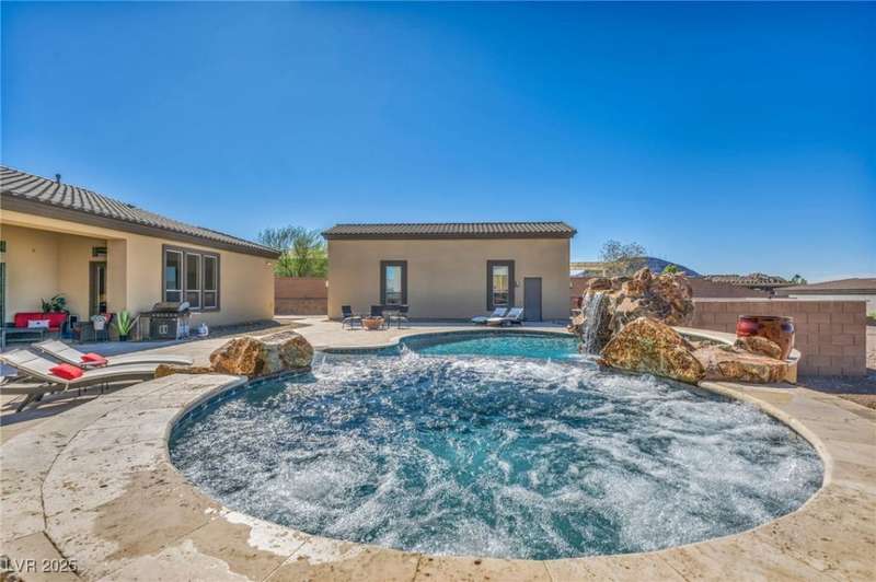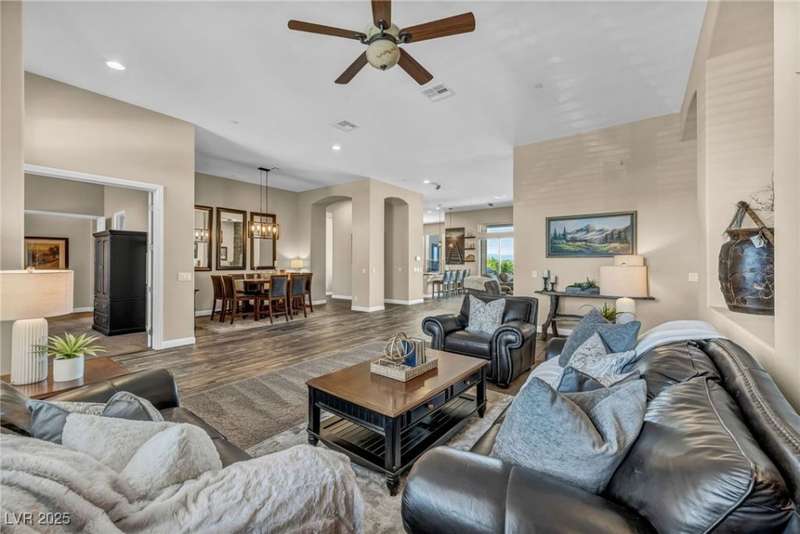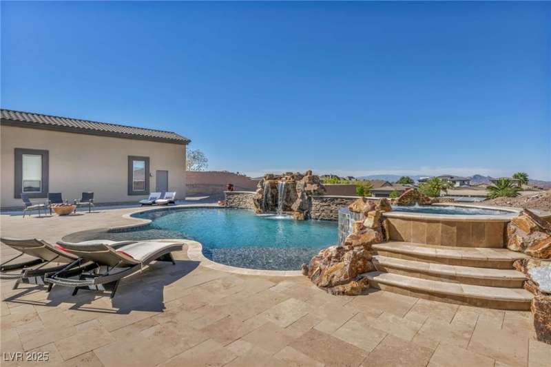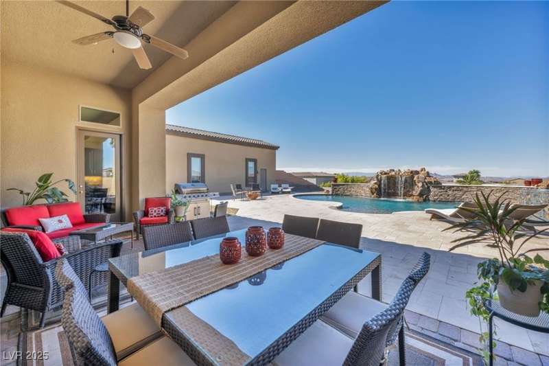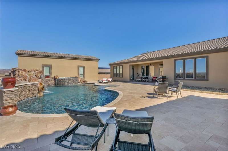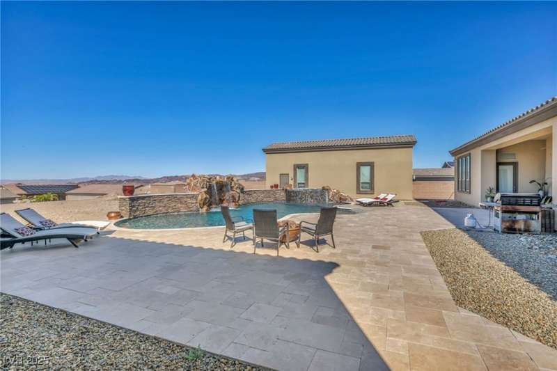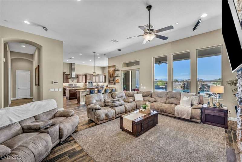 Unique Luxury Home sitting on a nearly full acre lot features 2 RV Garages, Resort Style Pool and an open single story layout with vaulted ceilings. Dual RV set up is nearly impossible to find and both garages have their own gate and driveway creating all the space you could need for RV's, Cars (with room for lifts), boats or whatever toys you can imagine. Panoramic views of the cityscape from the backyard have to be seen to believe them.