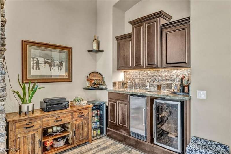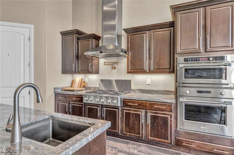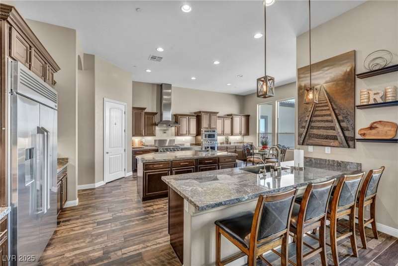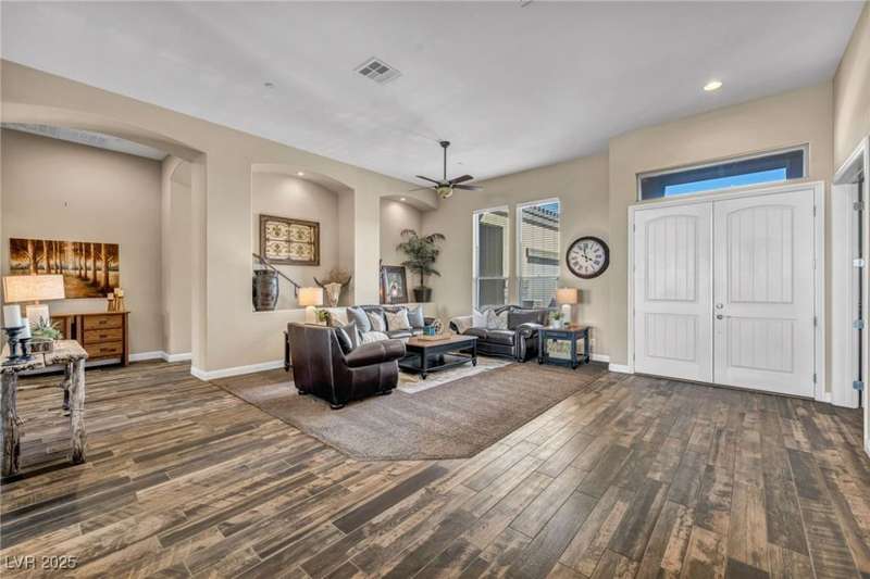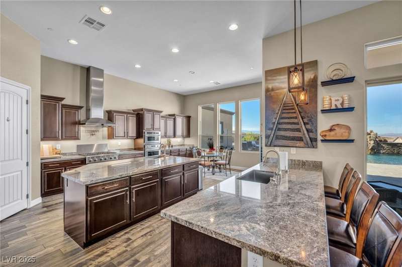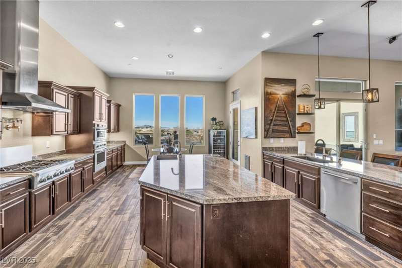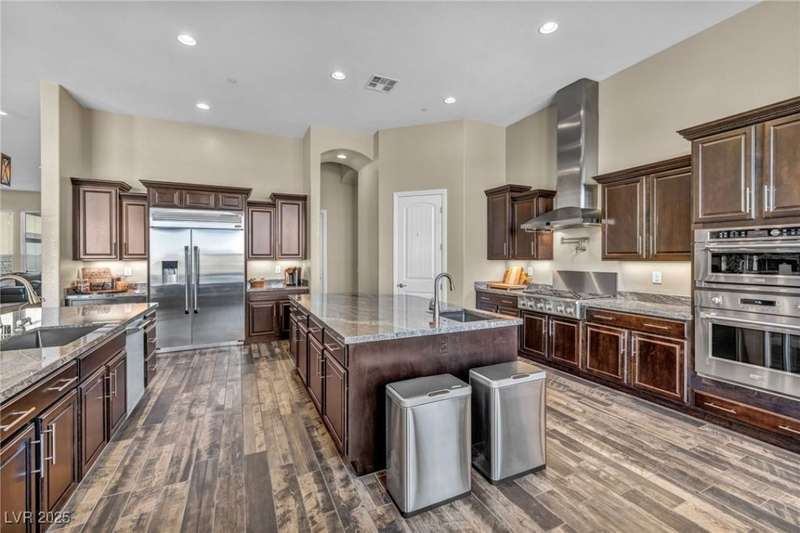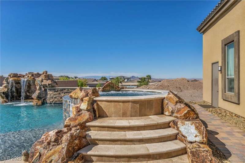 Unique Luxury Home sitting on a nearly full acre lot features 2 RV Garages, Resort Style Pool and an open single story layout with vaulted ceilings. Dual RV set up is nearly impossible to find and both garages have their own gate and driveway creating all the space you could need for RV's, Cars (with room for lifts), boats or whatever toys you can imagine. Panoramic views of the cityscape from the backyard have to be seen to believe them.