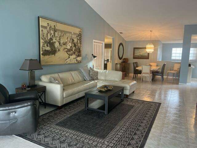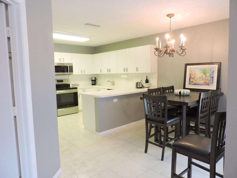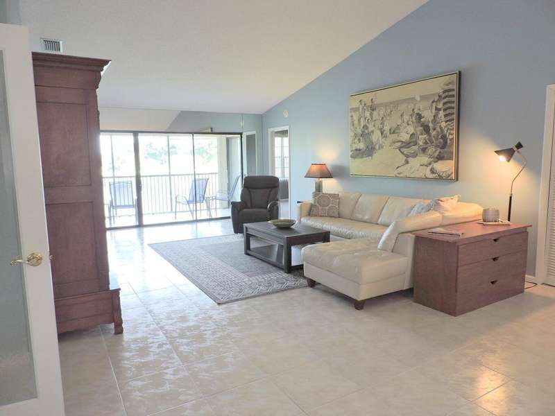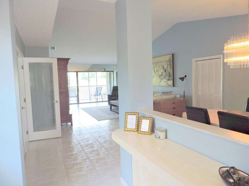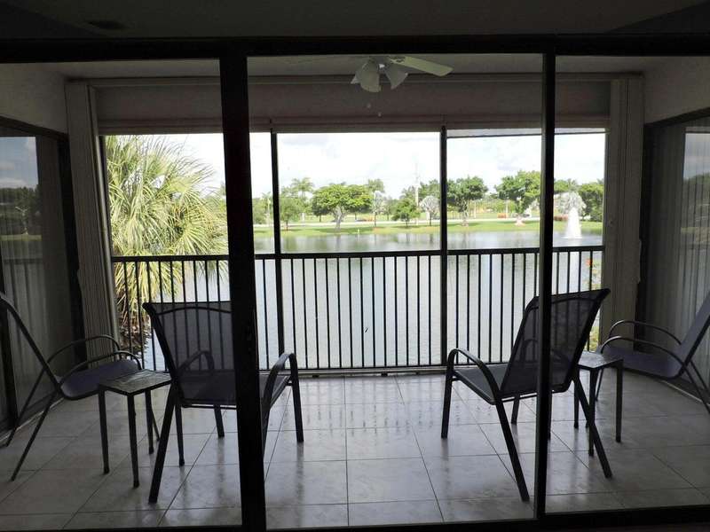 Beautifully decorated 3 bedrooms, 2 baths rental available for 2025-2026 season. 2nd floor walk up with high ceilings, living room and spacious family room. King bed in master, queen beds in other 2 bedrooms. Flat screen TV's. Full size washer and dryer in laundry room. Eat in kitchen and formal dining room. Fabulous direct lake and fountain view. Garage not accessible, but driveway in front of unit. Resort style community pool. Basic cable and wifi included. Tenant pays water and electric. 6 month optional membership available at Club.