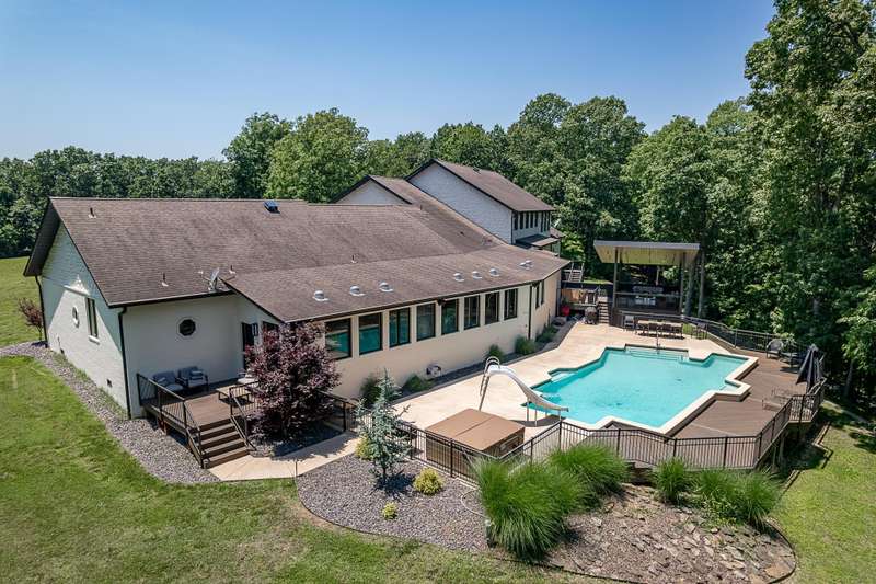 Stunning 9,000 Sq. Ft. Estate on 13 Acres - Just 18 Minutes from SpringfieldCompletely remodeled and designed for luxury living, this breathtaking 9,000 sq. ft. home is nestled on 13 private acres and offers a rare combination of elegance, space, and modern amenities. Soaring 18-foot ceilings greet you in the grand entryway and living room, creating an open, airy feel perfect for entertaining or relaxing in style.The spacious in-home office features custom built-in cabinetry and an elegant desk, ideal for remote work or study. Enjoy cozy evenings by either of the two gas fireplaces located in the main living spaces.Step outside to your personal oasis: an oversized in-ground pool with a brand-new deck, surrounded by an additional entertaining deck equipped with premium Bromic heating--perfect for year-round outdoor enjoyment.The master suite offers a private retreat with its own deck, separate his-and-hers walk-in closets, and a luxurious en-suite bathroom featuring a freestanding soaking tub and enclosed glass shower.A truly unique feature of this home is the expansive garden room, which spans the entire master wing--allowing for year-round indoor gardening or a peaceful sun-filled escape.Additional amenities include a grand circular driveway, a beautiful outdoor fountain, and two fire pits, making this home as inviting outside as it is inside.The large garage offers 4 vehicle spaces and includes heating, air conditioning, and a half bath--perfect for year-round comfort. It also features a dedicated work room, ideal for hobbies, projects, or additional storage.