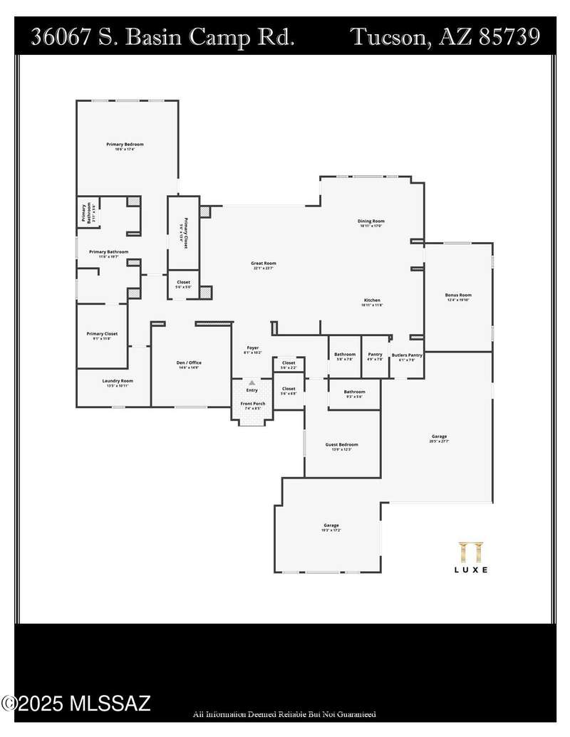 Discover the ultimate blend of elegance, comfort, and breathtaking views in this 3,484sf 2BR/2BA Sonrisa model w/den & bonus room, perfectly situated on a premium .47-acre cul-de-sac pool-sized lot in The Preserve at SaddleBrooke. Built in 2021, this one-story stunner offers sweeping golf course and mountain vistas, a gated front courtyard, features timeless Travertine stone, adding a touch of elegance and sophistication to the home's entrance. Step inside to a grand open-concept floor plan with soaring 10' and 12' ceilings, tile flooring throughout. The spacious Great Room features a tray ceiling, media alcove, walk-up dry bar, and a large sliding glass door that opens to over 690sf of covered outdoor living space, perfect for entertaining or relaxing with a view. The chef's kitchen is