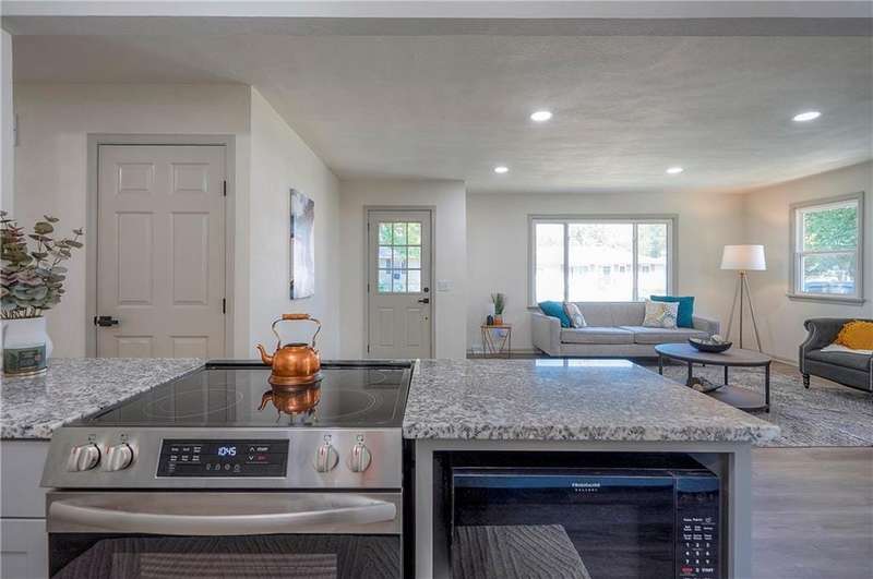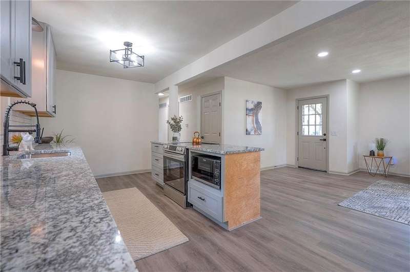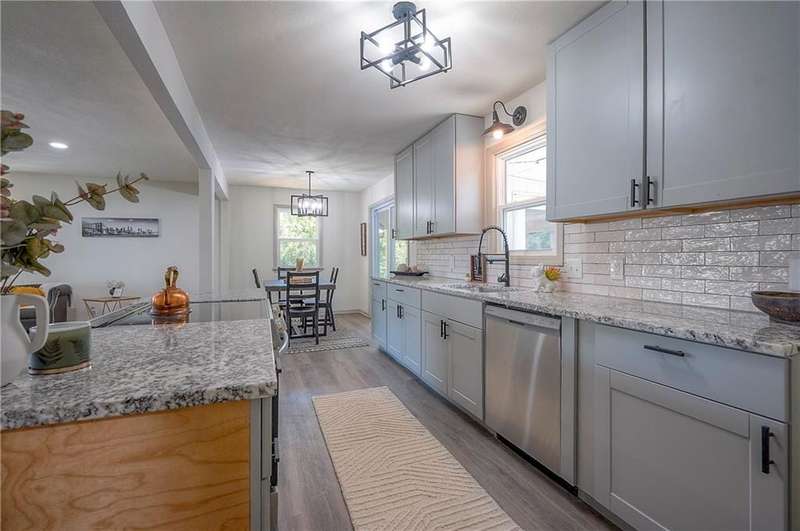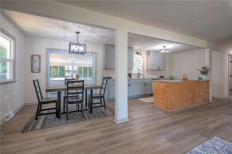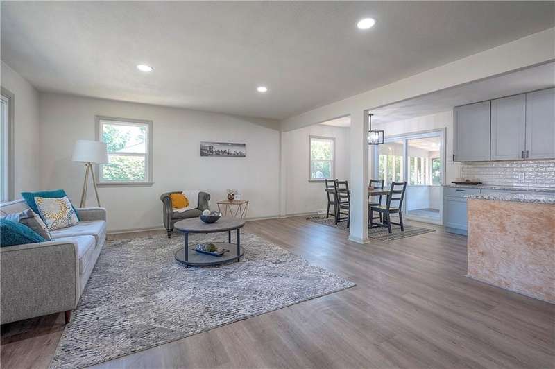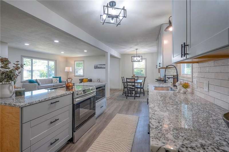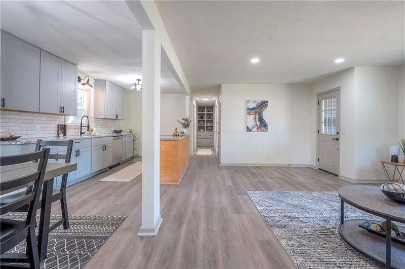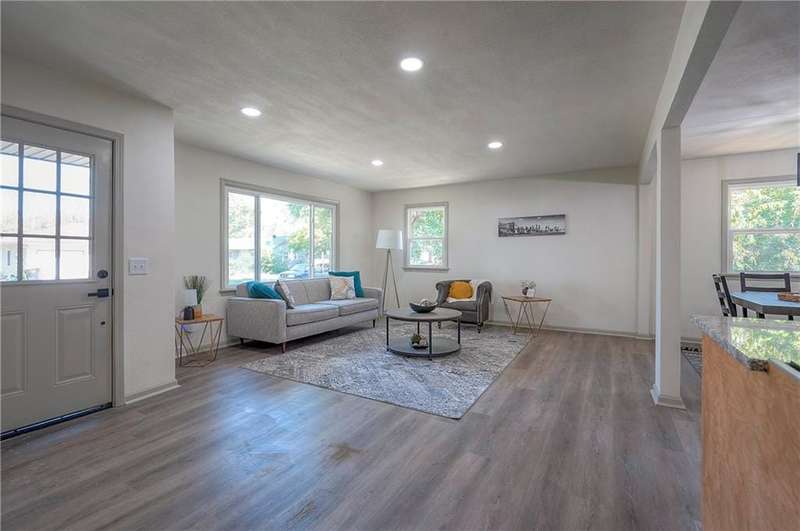 This beautifully renovated ranch-style residence is situated on the outskirts of town, complete with numerous upgrades. Upon entering, you'll be greeted by an open floor plan featuring new windows and sheetrock throughout. The expansive living area flows seamlessly into a fully renovated kitchen and dining space, complete with new cabinets and stainless steel appliances. The hallway leads to a bathroom with a new tub and two new vanities. The main level offers three bedrooms, ample built-in storage, and new trim and doors throughout. The basement features a spacious secondary living area that could serve as an additional bedroom, complete with a newly added full bathroom. The property also features a new electrical panel, switches, and outlets throughout. The laundry area is equipped with new washer and dryer hookups and drains. Exterior highlights include a large screened-in porch, an open deck, and a patio with stairs leading to the walk-out basement door.