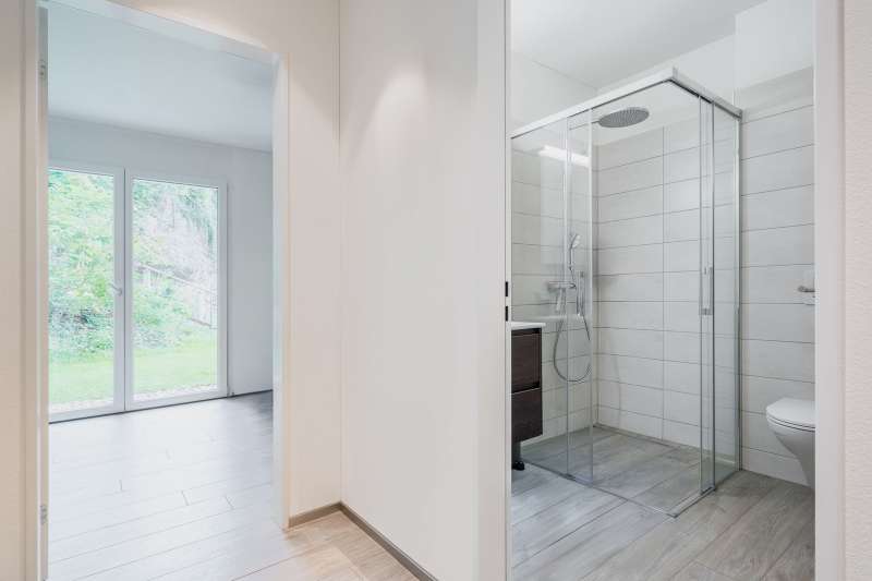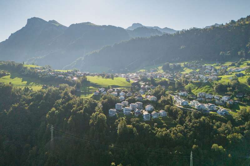 The 3.5-room flat is ideal for couples or small families. It has an open-plan kitchen which flows harmoniously into the living and dining area to form the centre of the flat. The spacious bedrooms offer plenty of storage space. Direct access to the spacious, covered terrace or the garden extends the living space outside and invites you to relax with a view of the mountain landscape.