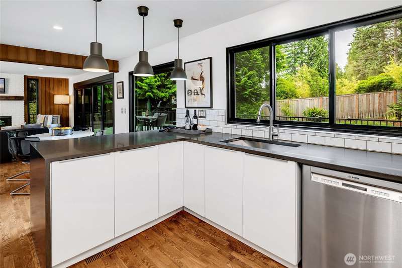 Lovely details await in this beautifully updated Mid-Century Modern home ideally located in the sought-after Mercer Firs community. A dramatic two-story entry, soaring vaulted ceilings & walls of windows fill the interior with natural light and an incredible sense of space. Rich oak hrdwd floors throughout. The remodeled chef’s kitchen is open to the family room with"Nana"glass doors that fully open to create seamless indoor-outdoor living w/access to the deck that extends the length of the house. Lush, mature landscaping is peaceful and adds privacy. Primary suite with renovated en suite 5-piece bath is like a luxury spa at home. Generously sized additional bedrooms up. Just a short walk to Island Crest Park and Island Park Elementary.