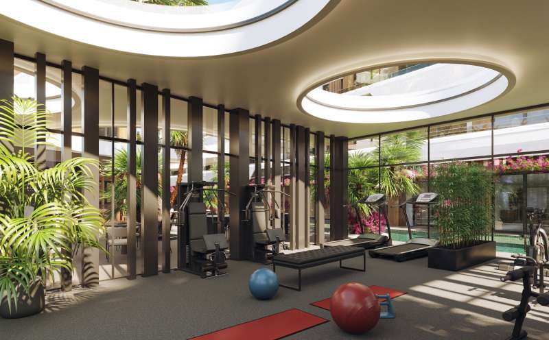 The modern flats are situated in an elite residential complex that covers 3.325 m² plots of land. The 6-storey project offers 34 flats in 3 blocks. The project offers 1 and 2-bedroom options. The residential complex is equipped with indoor and outdoor parking, a 400 m² outdoor swimming pool, EV chargers, security cameras, lifts, janitor service, 24/7 security, lobby, fitness, play areas, and game rooms.