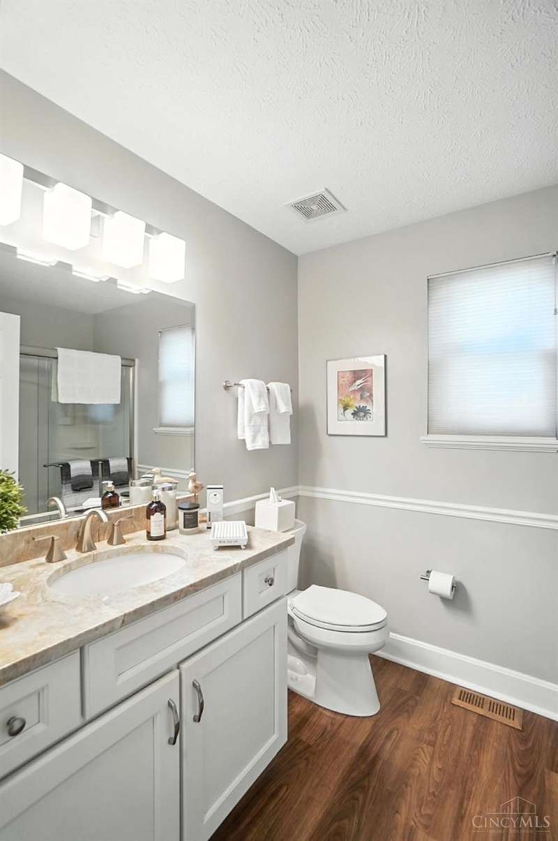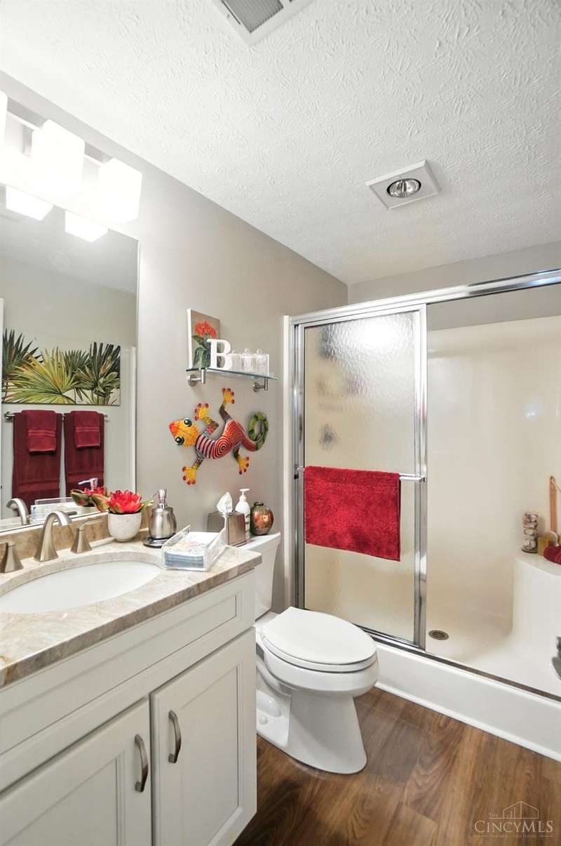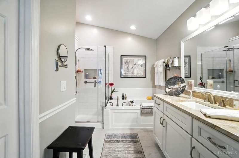 This beautifully appointed 4-bedroom, 3-bath home is located in the sought-after Hunters Ridge community. Designed with comfort and flexibility in mind, this home offers over 2,500 square feet of easy living. The first-floor primary suite is a true retreat, featuring vaulted ceilings, a walk-in closet, and a spacious en suite with soaking tub and separate shower. The updated kitchen with quartz counters and generous cabinet space flows into open living areas that feel just right for everyday life or hosting family. The finished lower level adds a private bedroom, full bath, and rec space for guests, hobbies, or relaxing movie nights. A whole-house Generac generator adds peace of mind, and the low-maintenance lifestyle means more time to travel, connect, and enjoy what matters most. Ideally located near shops, dining, and parks, this home offers the perfect next chapter for those ready to right-size without compromise.