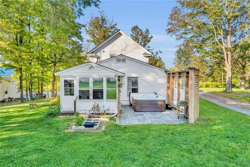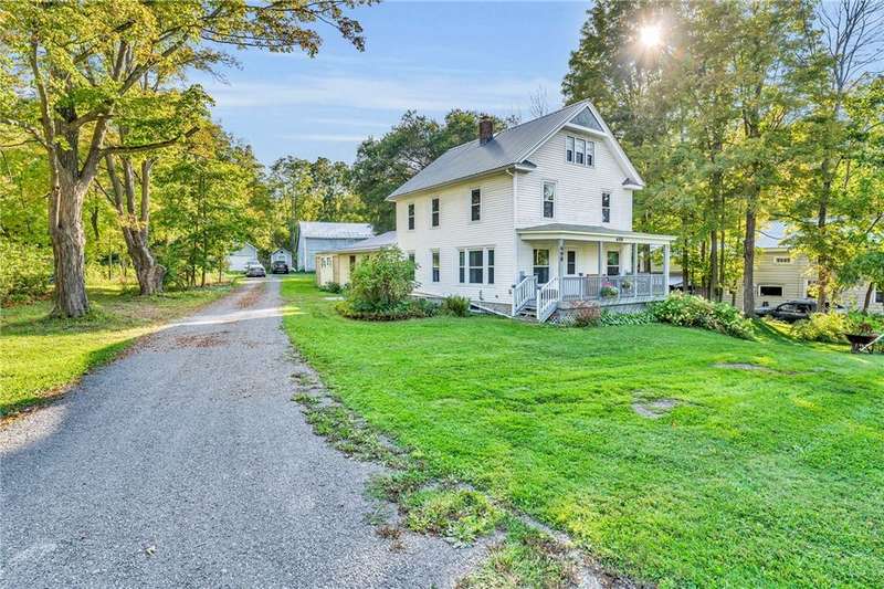 Available for the first time in over a century, this charming country residence on 6 ? acres is a perfect mix of generous space and convenience. This historic farmhouse is home to the once popular Mineral Springs, where people would stop regularly to collect the mineral water from the historic well, which still stands proudly in the front yard. The four-bedroom house has had numerous upgrades in recent years while still maintaining much of the original features including beautiful wood floors and woodwork. Recent upgrades include a new roof, new septic, rebuilt front porch, re-graveled driveway, newer hot water heater, patio with 6-person hot tub and more. There is a primary bedroom on the first floor as well as another bonus room that could be a great office or additional bedroom. Upstairs has 3 more bedrooms, a recently remodeled full bathroom and kitchenette. Enjoy relaxing on the front porch or enjoy the enclosed back porch when you want more privacy. Additional buildings include garage with new door, barn and milkhouse. Enjoy the paths on the property and access to the creek which still has the foundational remains of an old lumber mill. Close to amenities and easy access to I-88 and Albany.
