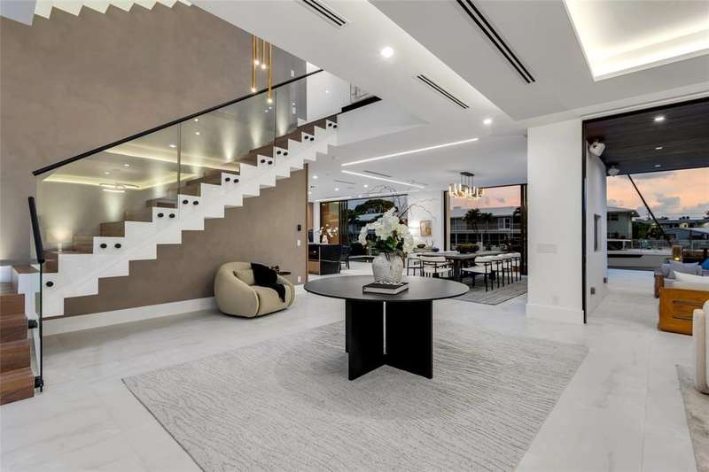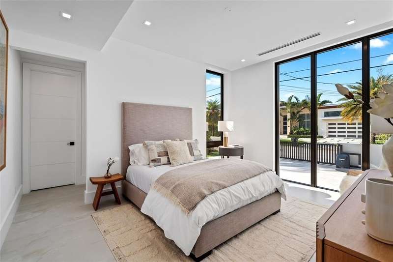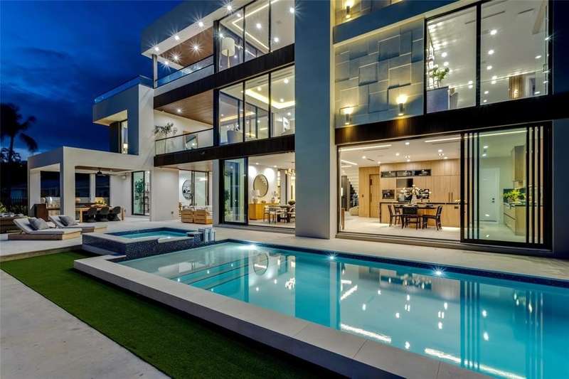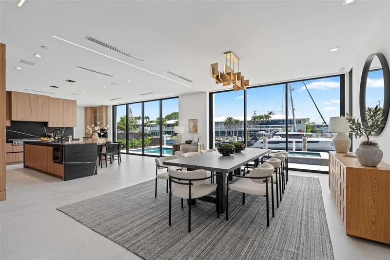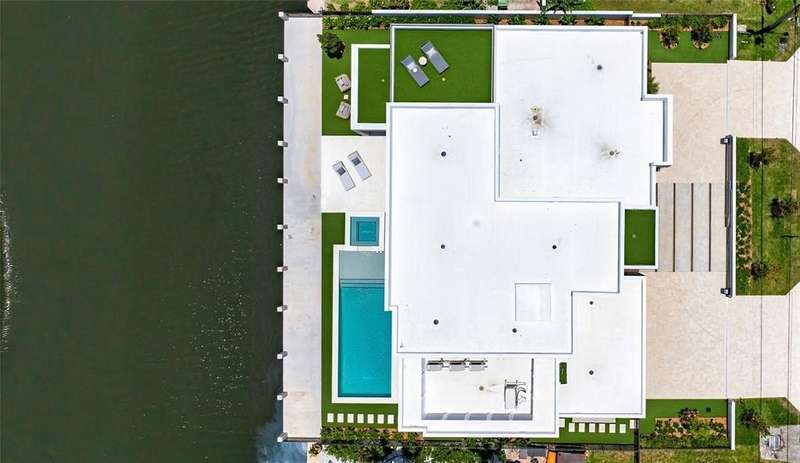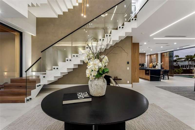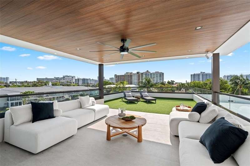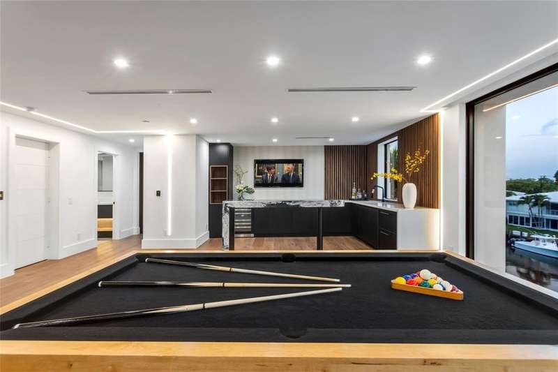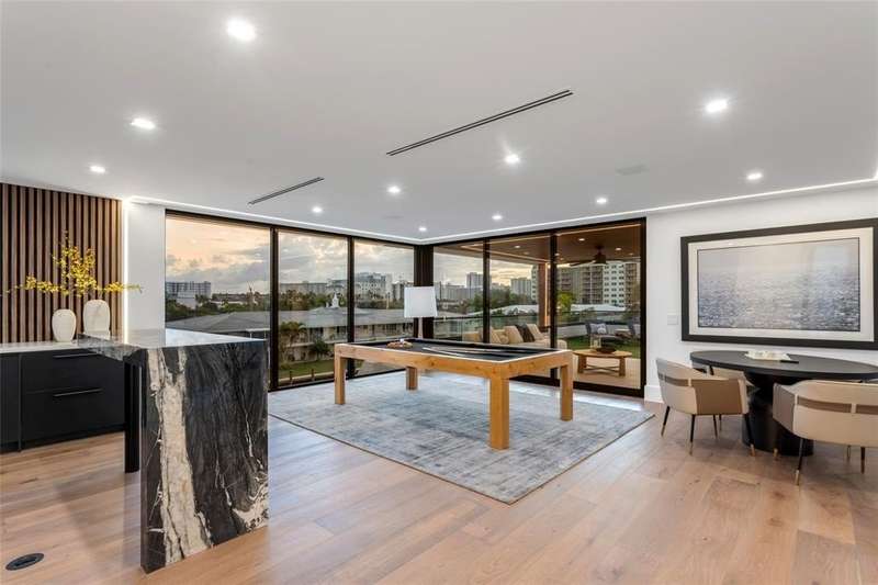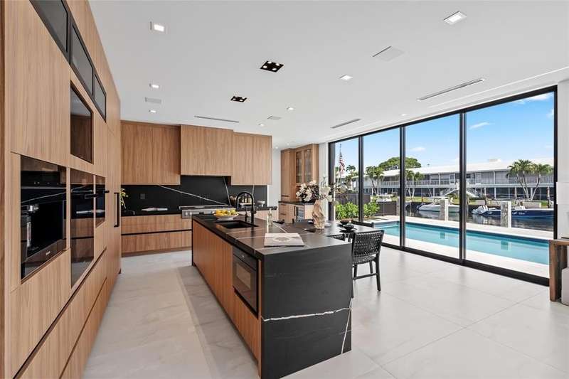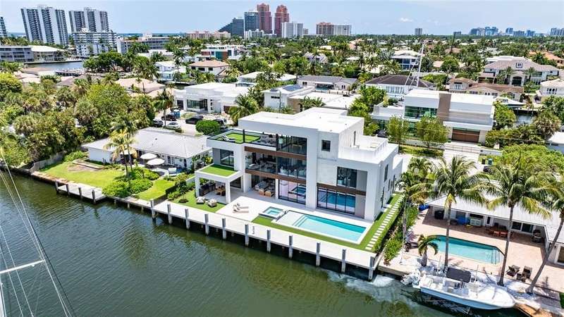 New, Ultra-Modern Gated Deepwater Estate on 100’ of waterfront in Coral Ridge Estates, designed by architect Bruce Celenski, developed by Feldman Development and built by Garza Contractors. This stunning new construction spans 8,286+/- total square feet, featuring five bedrooms, seven full baths, and one half-bath. Highlights include a private office, custom movie theater room, gourmet chef’s kitchen with premium appliances, elevator, and an expansive third-floor club room with panoramic views. Outdoor amenities offer a resort-style pool with spillover spa, a covered pavilion, and a fully outfitted summer kitchen for effortless entertaining. Ideal for boating enthusiasts, the property includes a brand-new full service concrete yacht dock, providing easy ocean access with no fixed bridges.