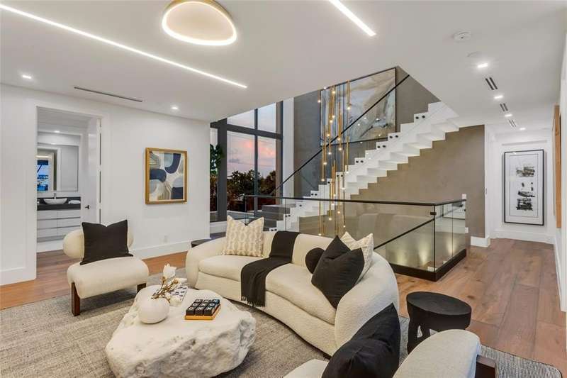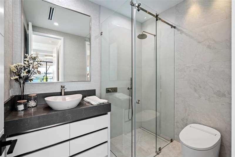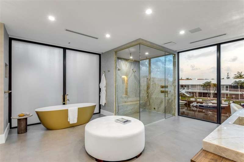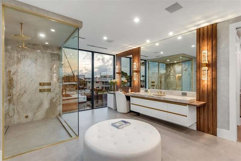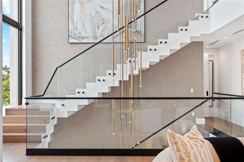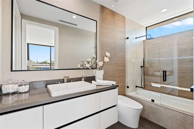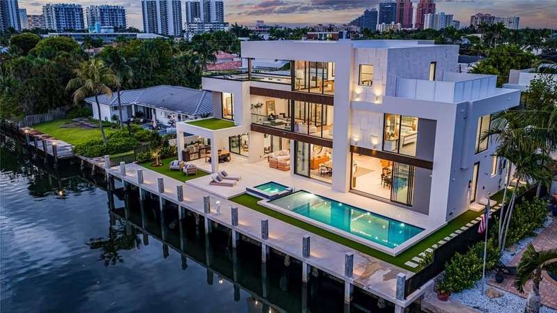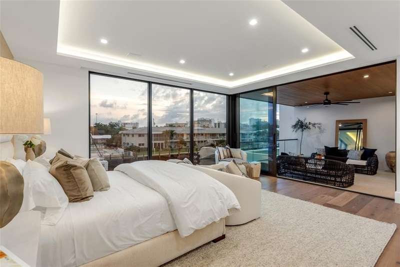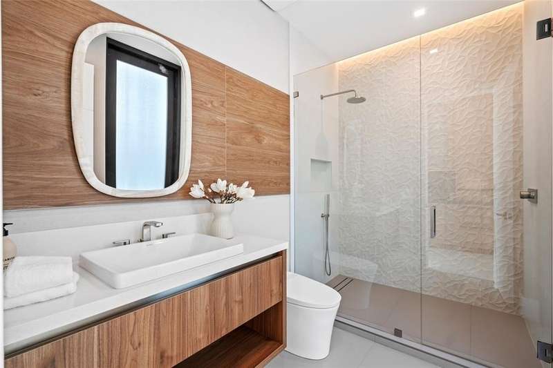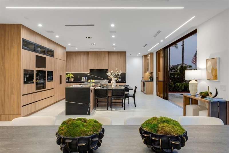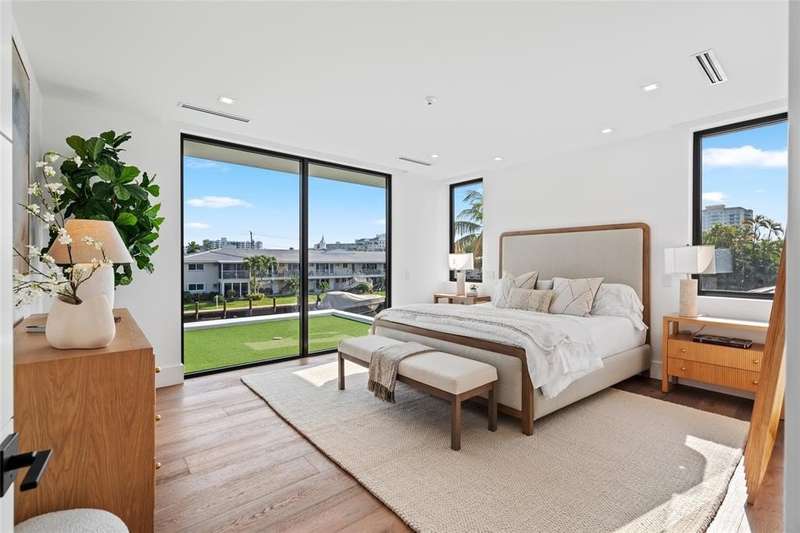 New, Ultra-Modern Gated Deepwater Estate on 100’ of waterfront in Coral Ridge Estates, designed by architect Bruce Celenski, developed by Feldman Development and built by Garza Contractors. This stunning new construction spans 8,286+/- total square feet, featuring five bedrooms, seven full baths, and one half-bath. Highlights include a private office, custom movie theater room, gourmet chef’s kitchen with premium appliances, elevator, and an expansive third-floor club room with panoramic views. Outdoor amenities offer a resort-style pool with spillover spa, a covered pavilion, and a fully outfitted summer kitchen for effortless entertaining. Ideal for boating enthusiasts, the property includes a brand-new full service concrete yacht dock, providing easy ocean access with no fixed bridges.