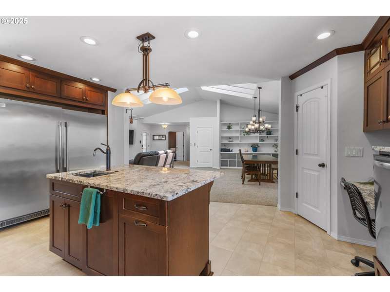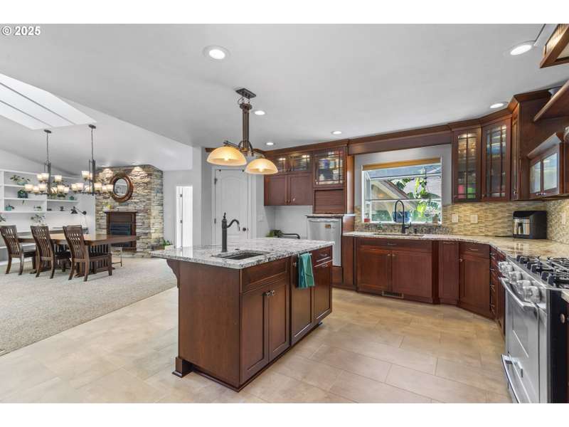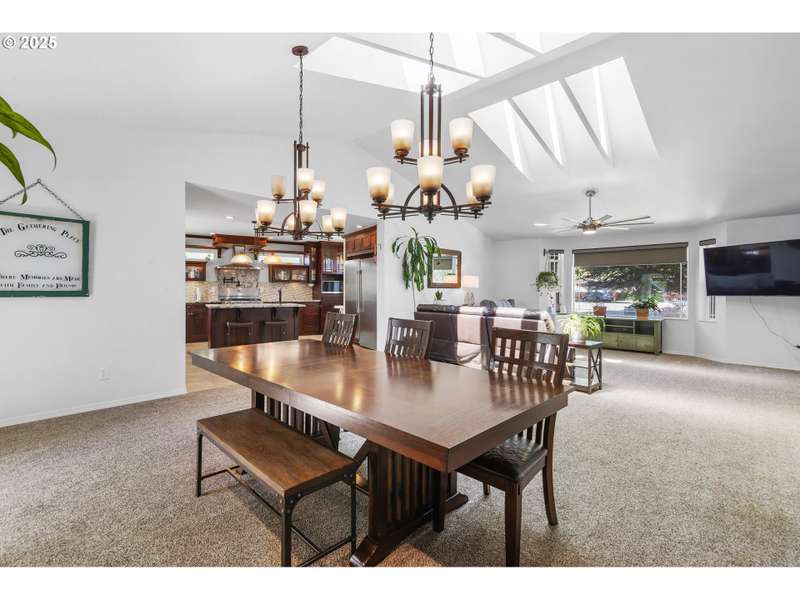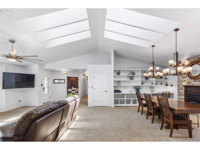 GREAT ONE LEVEL HOME W/ MULTI-GENERATIONAL LIVING. Main home is 2230 sqft with 3 bedrooms + office, 2 bathroom and has a vaulted great room w/ bay window & skylights. Large updated kitchen includes garden window, pantry, island, double sized fridge/freezer & gas range. Primary bedroom w/ ceiling fan, walk-in closet, walk-in shower & sauna. 2 car garage has been converted and is included in the square footage but could be changed back. Secondary living quarters is 975 sqft with 1 bedroom, 1 bathroom and includes a full sized updated kitchen w/ quartz island & pantry, laundry room plus a living room. Brand new roof, skylights & leaf guard gutters. This is a special setup designed for comfortable living in both areas. Fully fenced low maintenance yard w/ patios, covered grilling area & storage shed. Great Washougal location on cul-de-sac, near shopping & access to Highway 14.