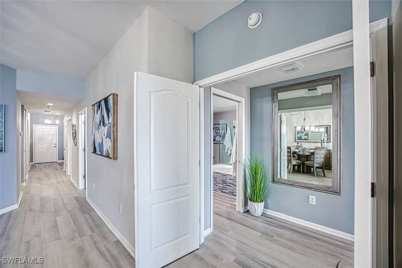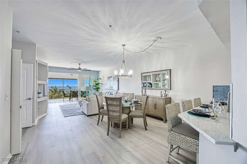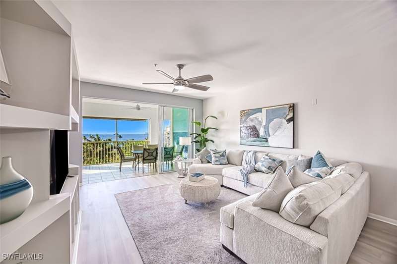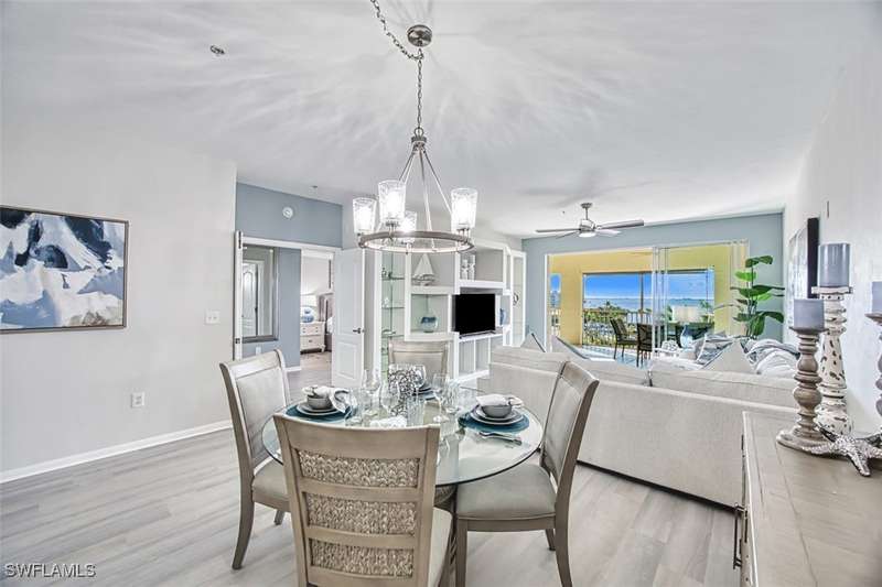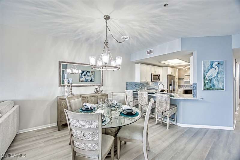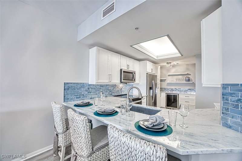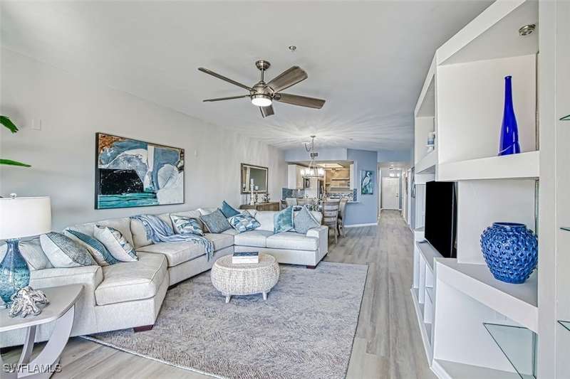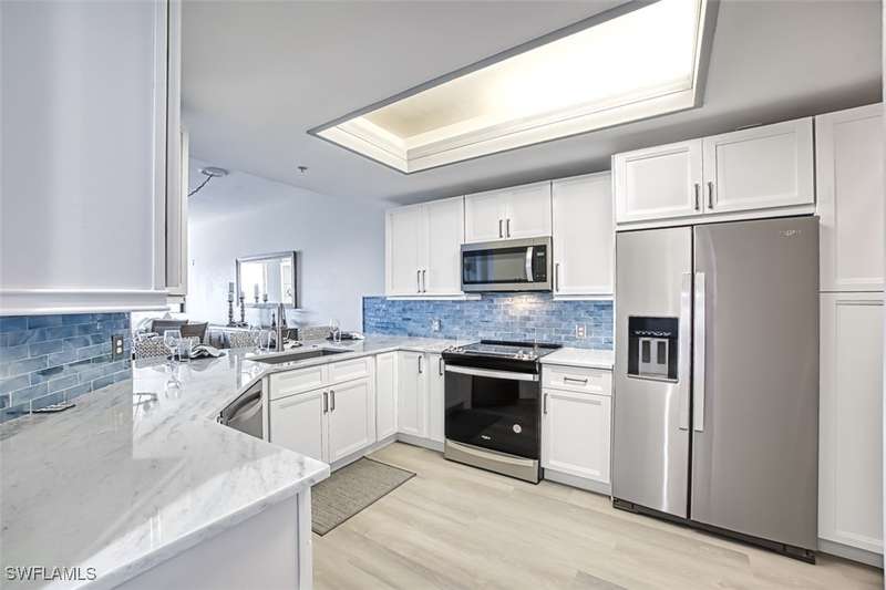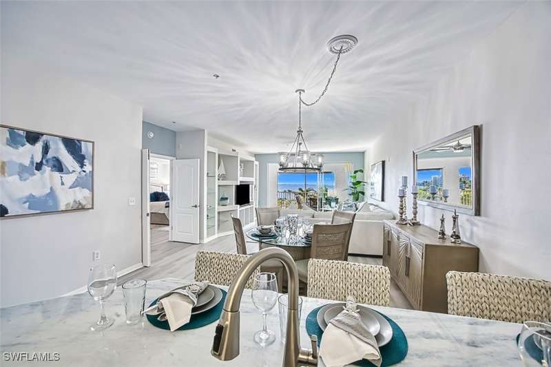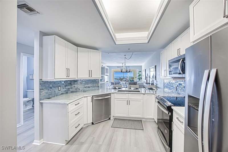Welcome to Water's Edge, a stunning riverfront community nestled in the Iona area of Fort Myers, close to Sanibel/Captiva Islands and Fort Myers Beach. This exclusive enclave offers a serene and active lifestyle with a wealth of amenities that include: - Riverfront Marina Basin with a sandy beach - 600-foot fishing pier (under reconstruction) and boat ramp - Marina with wet slips and dry storage - Community pool and spa - Tennis/Pickleball courts. Located in a Harbor Place Vista Building, this recent $100,000 plus comprehensive remodeled 3-bedroom, 2.5-bath condominium offers 1,656 sq. ft. of living space and is situated on the fourth level above the garage. Enjoy breathtaking views of the river and community amenities from your screened lanai. The unit features: - Open-concept design with tile and luxury vinyl flooring - Gourmet kitchen with white cabinetry, quartz countertops, tile backsplash, brushed nickel hardware and a wine bar - Stainless Steel Appliance package - Breakfast bar that overlooks the living area, perfect for entertaining - Walk in Closet with built in racks and organizers. This turnkey designer furnished home is ready for you to move in-simply unpack and start living the dream. Convenient under-building parking with a vehicle wash area adds to the ease of living in this meticulously maintained property. Live the Florida lifestyle at Water's Edge-where riverfront beauty, comfort, and community come together.