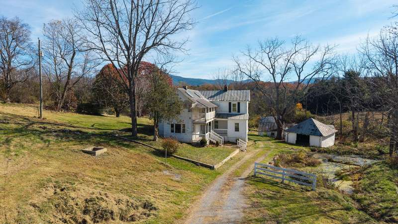 SAVE THIS HOUSE! Tucked in a private valley with farmland all around and Blue Ridge views out front, this 1910 farmhouse is ready for resurrection. Think: metal roof, big front porch, side sleeping porch, hardwood floors, spring-fed water, and barns/outbuildings that speak to its working-farm history. Quirky and cool--its original orientation faced the old rail line (you can still hear trains drift by). ~2 acres (+/-) in the Riverheads School District. Yes, it's a major rehab, but thepayoff--equity, character, and pride--is worth it. Contractors, preservationists, and homesteaders: bring vision, tools, and a plan. RESURRECTION, indeed. Some AIrendering photos included so one can envision a finished product..