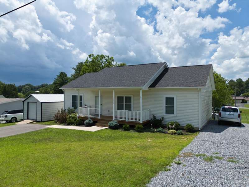 One level living at its BEST with this three bedroom, two bath ranch home with a beautiful open floor plan with 9' ceilings and LVP flooring. The Primary Suite boasts a walk-in closet with double sink vanity and shower. Enjoy summer cookouts on the rear deck or morning coffee on the covered front porch. There is a metal building with roll up door for extra storage too! Conveniently located minutes to I-81, Volvo, Shopping and NRCC as well as an easy 30 minute commute to Celanese, Virginia Tech, Radford University, etc.. Move-in ready!