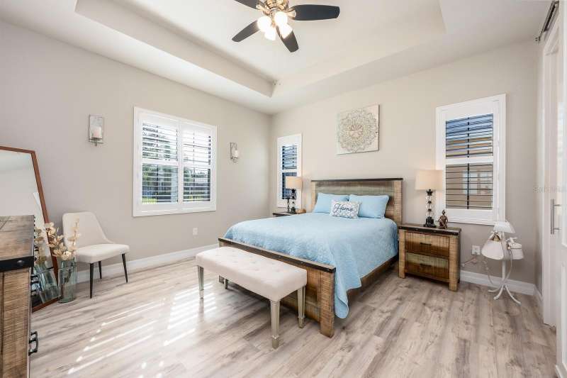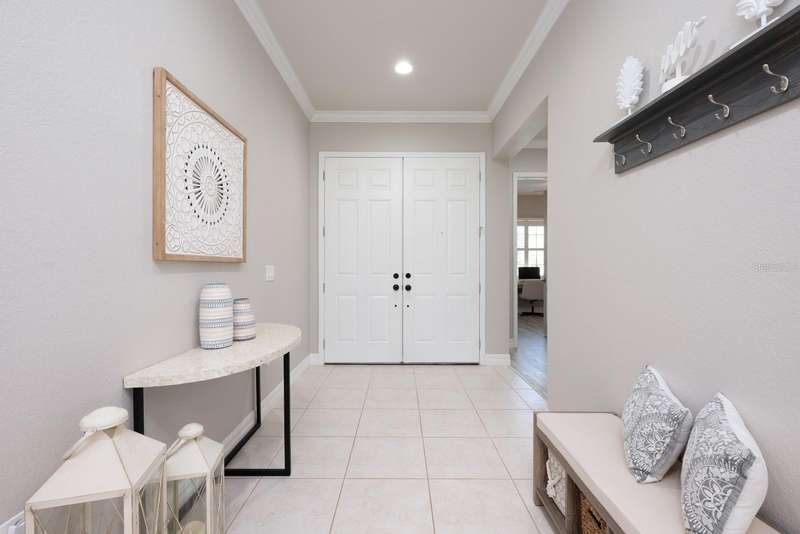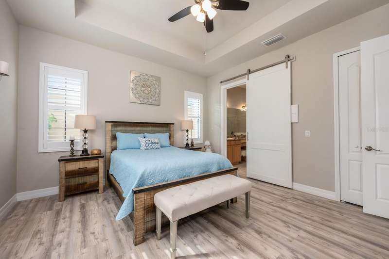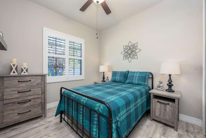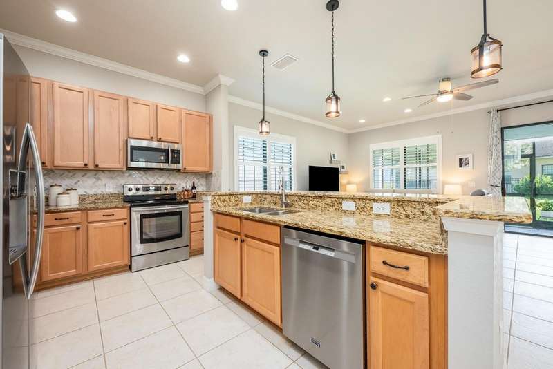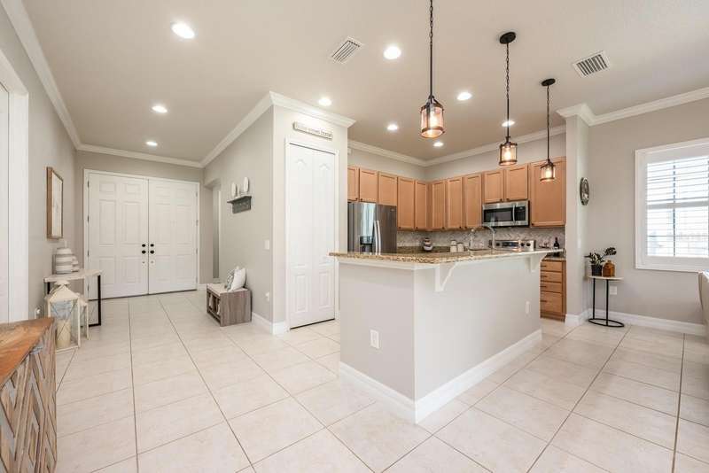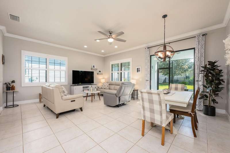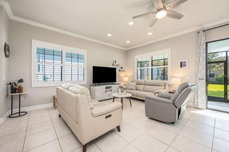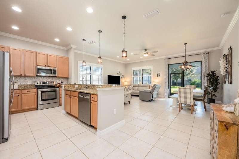 Seller may consider buyer concessions if made in an offer ~ Welcome to Woodland Lakes Preserve, a beautifully maintained GUARD GATED community in East Orlando surrounded by peaceful ponds, mature trees, and natural conservation areas! This lovingly maintained 3-bedroom, 2-bath home combines timeless style with thoughtful modern upgrades, offering comfort, function, and serenity on a spacious lot with a tranquil POND VIEW. Major UPDATES provide peace of mind and lasting value: a NEW ROOF (2024) with a transferable warranty, FRESH EXTERIOR PAINT (2023), NEW A/C (2022), NEW GUTTERS (2022), INTERIOR PAINT (2020), and a Smart Ecobee thermostat (2020). Inside, the owner has curated a fresh, neutral aesthetic with new faucets (2023), CUSTOM BALI PLANTATION SHUTTERS (2022), updated lighting (2020), and LUXURY VINYL PLANK flooring in the bedrooms (2020) paired with durable tile throughout the main living areas. The garage impresses with epoxy flooring and a whole-home surge protector already in place. Step through double front entry doors into a bright, OPEN FLOOR PLAN with high ceilings and elegant crown molding. The kitchen is the heart of the home, featuring STAINLESS STEEL APPLIANCES, granite counters, a large ISLAND with bar seating, recessed and pendant lighting, and a striking HERRINGBONE TILED BACKSPLASH – perfect for the home chef. The open living and dining areas flow seamlessly toward the SCREENED LANAI, where dual ceiling fans invite you to relax and enjoy your FENCED BACKYARD. Your PRIMARY SUITE offers a lovely tray ceiling, three windows for abundant natural light, a WALK-IN CLOSET, and a custom BARN DOOR leading to a private en-suite bath. The SPLIT BEDROOM LAYOUT ensures privacy, with two additional bedrooms and a second full bath conveniently located between them off the foyer. The home is also pre-wired for surround sound speakers, making it ideal for entertaining or quiet movie nights in. Woodland Lakes Preserve offers fantastic amenities, including a COMMUNITY POOL and large playground, all within a well-kept, quiet neighborhood. Perfectly situated near Waterford Lakes Town Center, Lake Nona, Downtown Orlando, and the Orlando International Airport, with quick access to 417, 408, 528, Alafaya Trail, and SR 50. ***Furnishings are negotiable, making this light, bright, and thoughtfully updated home ready for you to move right in. Woodland Lakes Preserve welcomes you home - call today to schedule a tour!