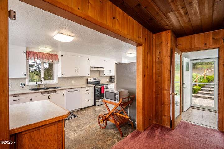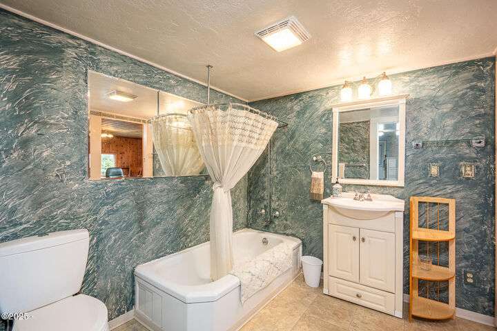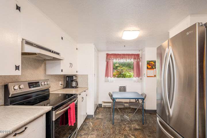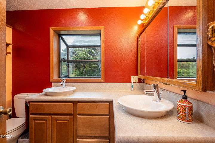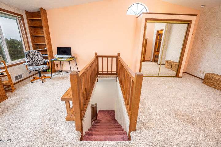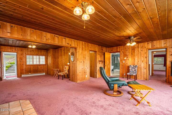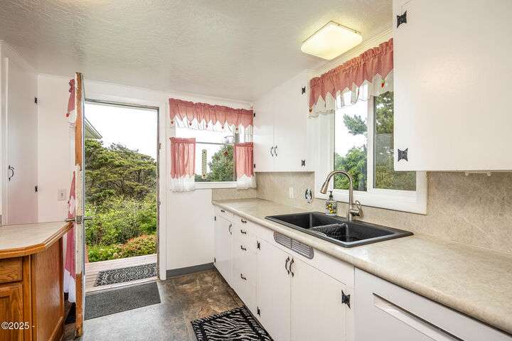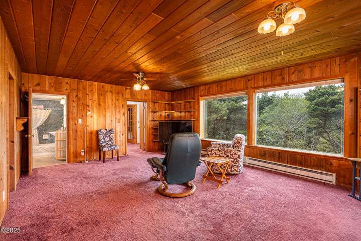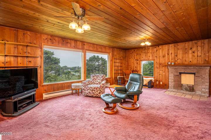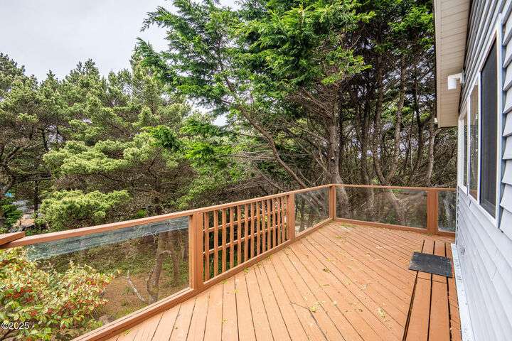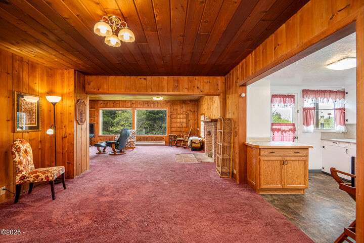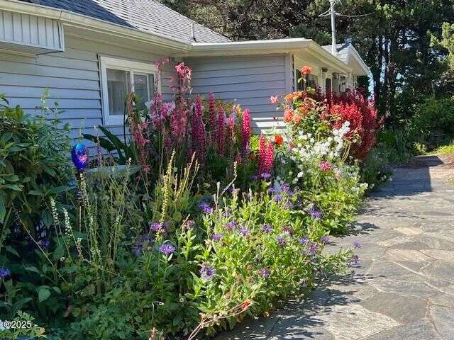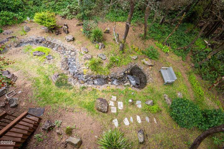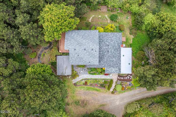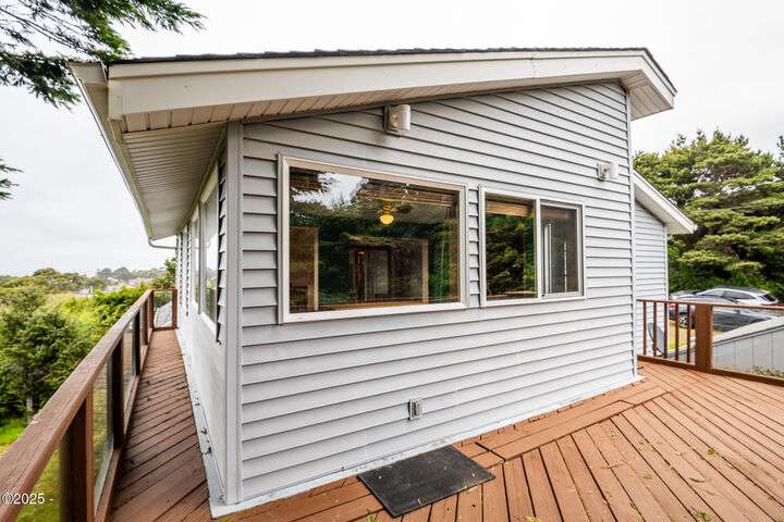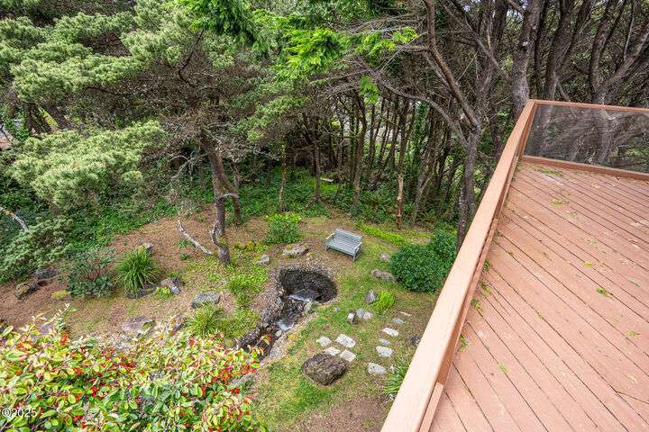 Seal Rock Treasure - Historic Coastal Home with Ocean Views & Garden Paradise! Two tax lots with Hwy 101 frontage provide optimal privacy for this one-of-a-kind property in the heart of Seal Rock, Oregon. Originally built in the 1890s—reportedly once serving as the local dance hall—this home has been thoughtfully transformed over the decades. A 1940s addition introduced a cozy kitchen and bedroom, while the 1980s brought a spacious upper-level primary suite with vaulted ceilings and sweeping ocean views. Today, the residence offers 3 bedrooms and 3 bathrooms, seamlessly blending historic charm with modern comfort. Highlights include a library finished in solid Blue Pine, creating a warm retreat. Living and dining rooms with exposed second-growth Hemlock beams and pristine solid wood floors beneath the carpeting. Numerous tasteful updates that reflect true pride of ownership. Outdoor living is equally enchanting. Relax on the welcoming porch, upper deck, or patio, then wander down flagstone steps to your own 50-foot man-made creek and waterfallan idyllic, private garden sanctuary. The property also includes an additional western-facing lot, further enhancing privacy and potential. And just a five-minute stroll brings you to the iconic Seal Rock Beach, where rugged coastline meets timeless Oregon beauty.