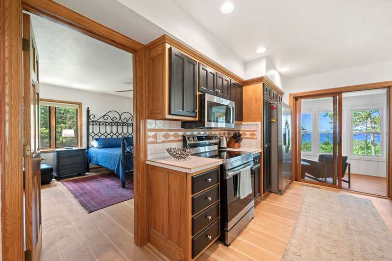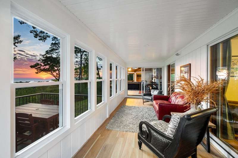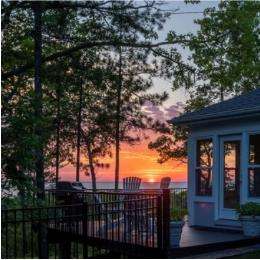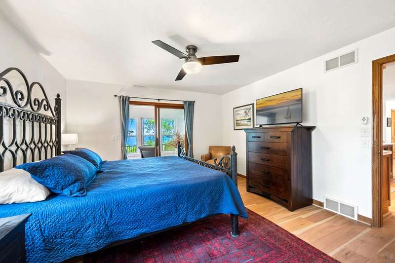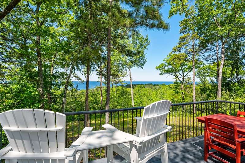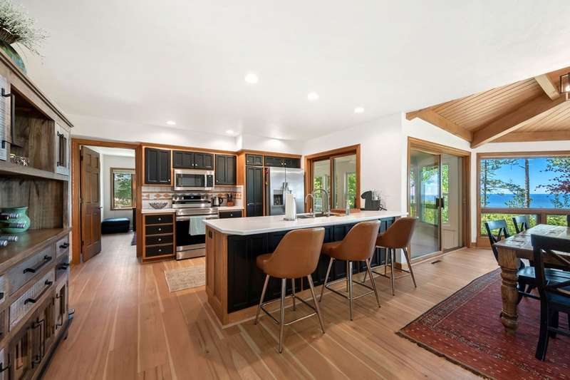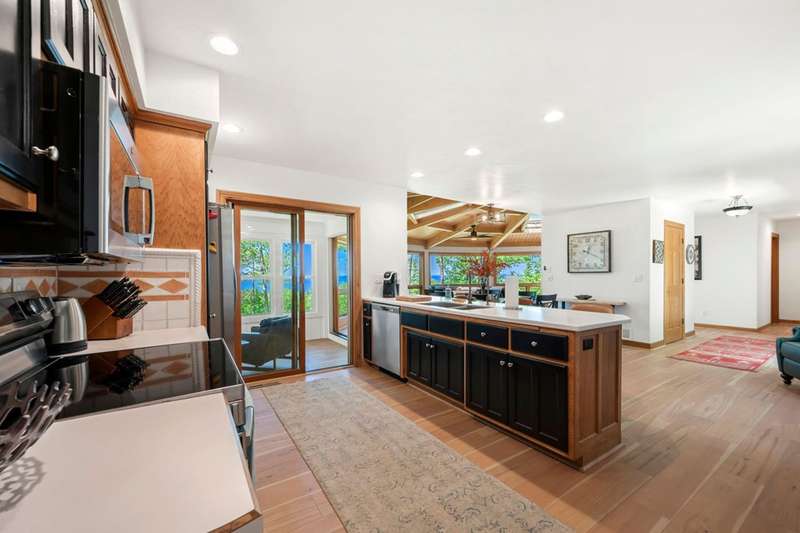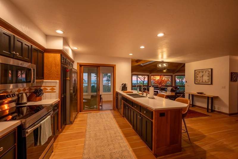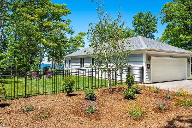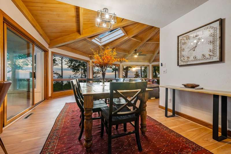 Perched atop a private bluff with sweeping bay views, this Door County retreat showcases unforgettable sunsets through floor-to-ceiling windows in the living room and four-season sunroom, as well as from the deck. Vaulted timber ceilings, skylights, and a cozy fireplace create a warm, inviting gathering space, while the kitchen and primary suite open directly to the sunroom for effortless indoor-outdoor living. With 3 bedrooms, 2 bathrooms, new flooring, a renovated guest bath, and over 2,100 sq ft of light-filled space just minutes from Sturgeon Bay and Egg Harbor, this home is the ultimate Door County sanctuary, where breathtaking views meet timeless design.