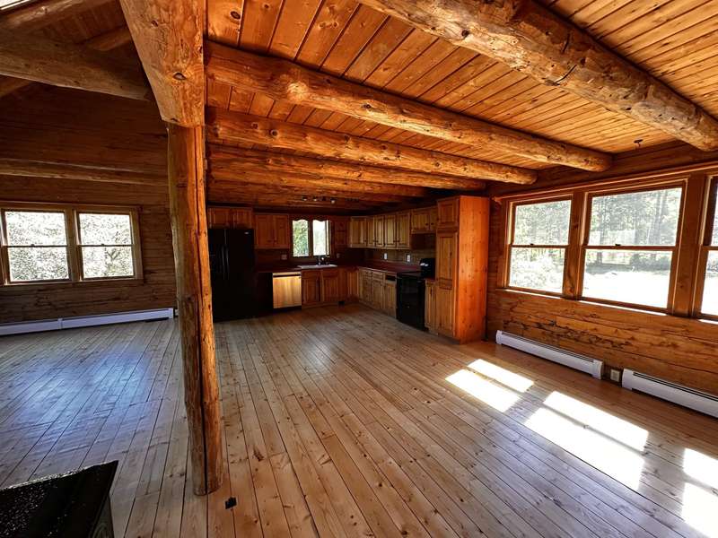 WONDERFUL WAUMBEK VIEWS FROM LOG CABIN ON 32 ACRES! Secluded and set off of Old East Rd is a small log cabin that will provide you a peaceful escape to the White Mountains. Wow, the pine floors were refinished on the main floor and loft bedrooms. Open concept kitchen with wood stove providing additional heat and log cabin ambiance. Main heat is forced hot water with furnace in the full basement with washer/dryer. Full bath on main floor and additional 3/4 bath in basement. The full basement is an opportunity in and of itself. Front entrance steps rebuilt and a fresh coat of paint on the front door provide a welcoming entrance. More to do here but ready to move in so you can enjoy the views and finish transforming the landscape into your personal Shangri-La. Very close to Weeks State Park, Lancaster Main Street, Grocery Store, Snow Mobile Trails, Hiking, Skiing and all that the North Country offers. Priced to Sell "AS-IS".