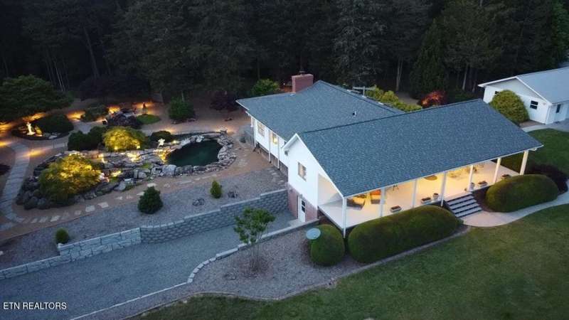 This extraordinary family estate is available for the first time in over a century. Nestled on 16.13 gated acres of serene, secluded land, this custom-built home is a masterpiece of design and craftsmanship. Inside, you'll find beautifully finished hardwood and tile floors, granite countertops and custom built cherry cabinets in the kitchen and bathrooms, and a luxurious master suite complete with a walk-in closet, frameless glass shower, soaker tub, and dual vanities. The second bedroom features a built-in Murphy bed (Queen) and an elegant tile bathroom with accent walls, a frameless shower and marble flooring. The office could be converted to 3rd bedroom, The home features Anderson windows and doors, custom molding, and an ECO whole-house water softening system. A new roof was installed in 2023. The home's basement provides ample storage, with built in cabinet space and a workshop area, making it perfect for any project. Step outside to a stunning Japanese garden, complete with a three-tier waterfall flowing into a 10,000 gallon pond, mature Japanese maples, and thoughtfully placed granite lanterns. The garden becomes magical at night due to extensive Volt LED night lighting that accentuates the many features of the garden. A timber framed veranda with trex decking leads to a secluded viewing area. There is 1200 sq ft. Of porch space both covered and uncovered. The garden also features a gas fire pit area, a blue stone walkway, and a 12-zone drip irrigation system. Additional amenities include a three-car garage with a workshop and storage area, an RV storage facility with power, and a tractor storage barn. This property is perfect for quiet reflection, entertainment, and weddings and has been featured in McMinn Life Magazine. Additional Properties Available for sale: Two additional tracts of land, 16.08 acres and 10.95 acres adjoin this property, all part of the original estate.