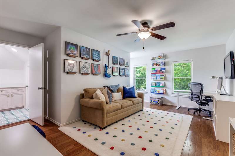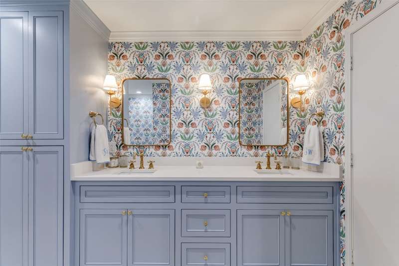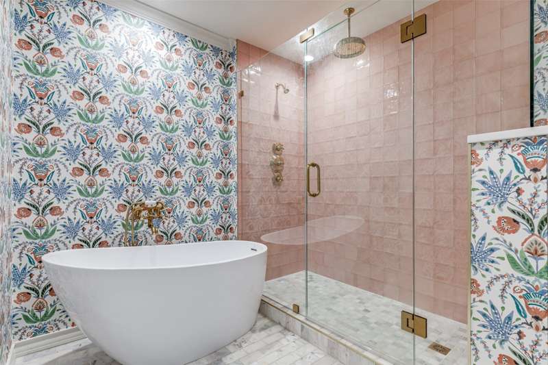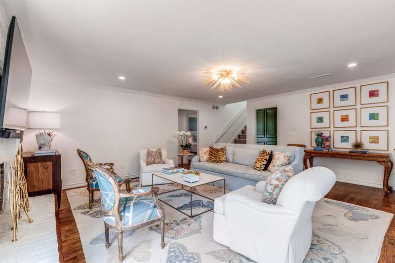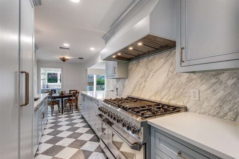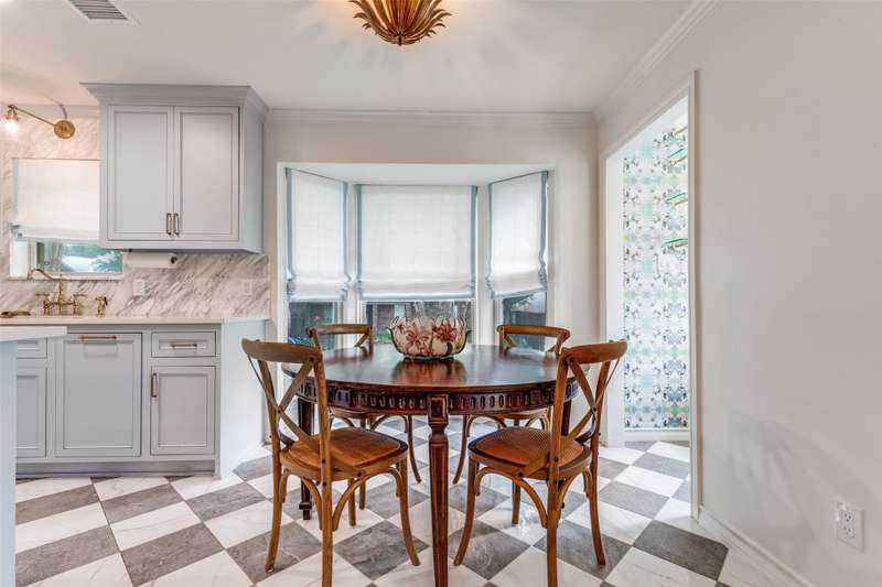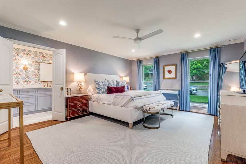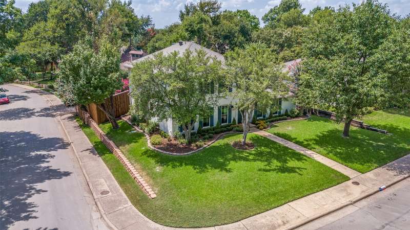 Welcome to this designer renovated Lake Highlands gem, a one of a kind home featured in design publications and curated by Emory McKim Design. Situated on a professionally landscaped and lighted quiet corner lot in the highly sought after, Moss Haven Elementary, this 4 bedroom, 2.5 bath property blends family functionality with elevated style and finishes. Offering an open floor plan and fully renovated in 2023, this special home boasts a custom kitchen with granite tops, Italian marble backsplash, Zline gas range, Bosch dishwasher, Monogram refrigerator, custom built cabinetry and window treatments. Open wet bar wrapped in iconic Laura Park wallpaper with icemaker and pass through window to custom Trex deck, grill, outdoor living area with pergola. Spacious first floor Primary suite with marble bath and custom tile and wallpaper, Formal Dining Room with avocado color walls and custom drapes, has pocket door to kitchen. Every space in this designer home is move in ready and thoughtfully designed. This home is the perfect blend of comfort, character and curb appeal.