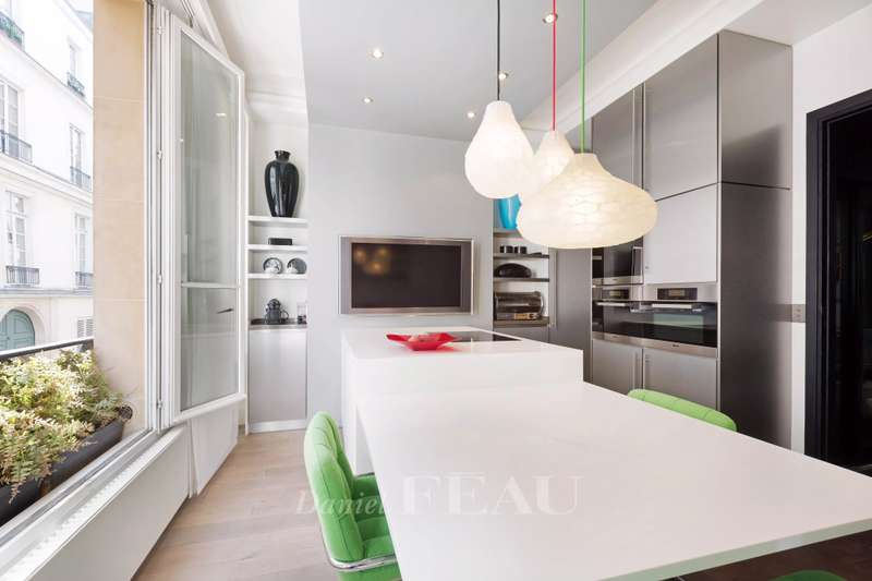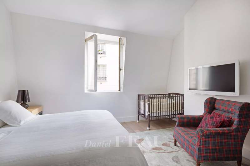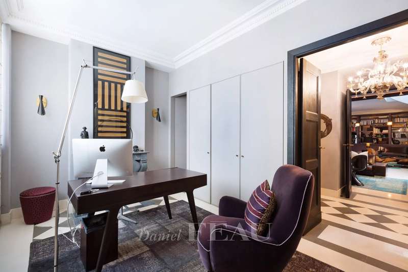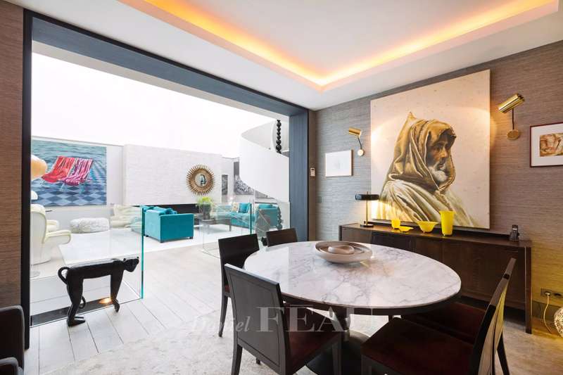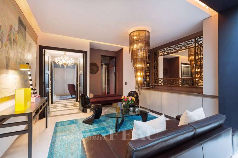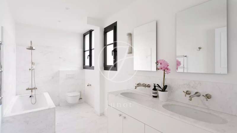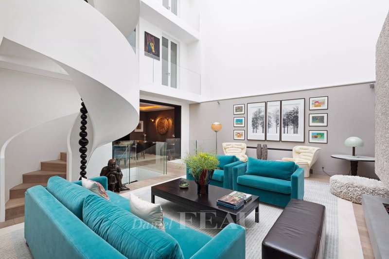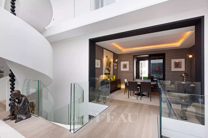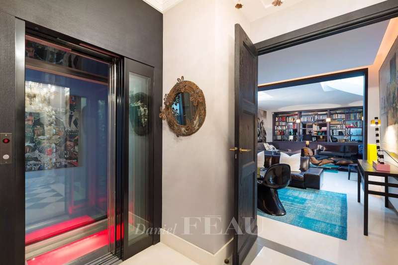 Rue de Lille, in the heart of the Carré des Antiquaires neighbourhood. This private mansion dating from the early 19th century is fitted with an interior lift and a staircase designed by contemporary artist Jean-Michel Othoniel accessing all floors from the basement to the third floor. Renovated throughout in a resolutely contemporary style, it comprises an entry, a study, a drawing room, an evening lounge, a generously proportioned living/reception room featuring a remarkable 7-metre high ceiling, a dining room, a spacious equipped kitchen, and three bedrooms with bathrooms. The basement comprises a guest bedroom with a shower room, a sauna and a laundry room. In a prime location in the capital’s prestigious 7th District.