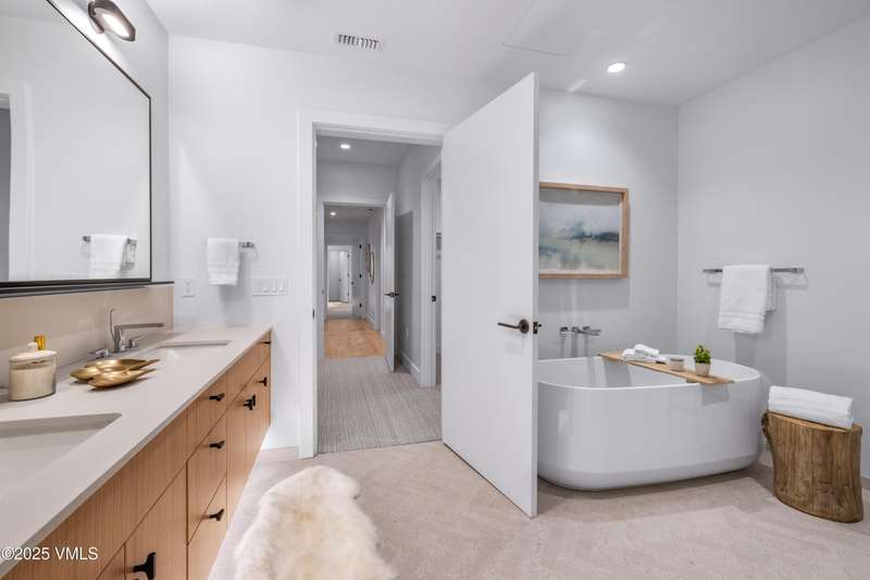 This incredibly rare one-level 5-bedroom + office, 4-bath residence is the largest in the building, featuring two master suites, an expansive living area, and a patio that opens directly to the Springs Outdoor Oasis & Pioneer Plunge. The contemporary layout is designed for comfort, livability, and style, with a spacious open floor plan, 9-foot ceilings, Arrigoni hardwood floors, stainless steel kitchen appliances, two walk-in closets, owner's storage, and a cutting-edge finish package. Includes two unassigned parking spaces and access to several guest spaces. Frontgate | Avon is a new, astutely appointed, amenity-rich development featuring a masterfully designed four-story condominium building with 75 residences and 9 townhomes. Located adjacent to the entrance of Beaver Creek Resort, this limited collection of modern mountain properties is thoughtfully integrated into the natural environment. Envisioned to bring residents closer to nature, Frontgate | Avon offers The Springs Outdoor Oasis & Pioneer Plunge-a year-round outdoor bromine pool, water slide, and 15- and 35-person hot tubs-along with a Mountainside Courtyard with fire pits, outdoor grills, and gathering spaces. Additional amenities include community bikes and e-bikes, two sports simulators, a top-tier fitness center with an outdoor mountainside workout area, and a game room. On-site conveniences include dedicated shuttles to Beaver Creek and Vail, ski and boot lockers, underground heated parking, EV charging, a car wash, dog wash, property management services, and a grab-and-go market.