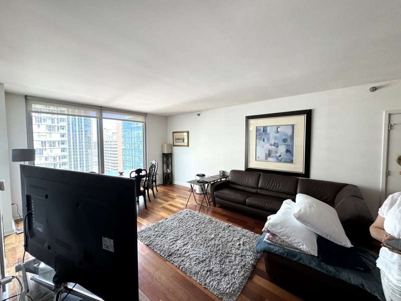 Large furnished one bedroom unit with Den and guest bathroom off of living area. Parking space in building included! Cherry wood floors, large kitchen with granite counters and breakfast bar, in-unit laundry. Large master bedroom with double closets, huge bathroom with jacuzzi tub and shower, double sinks. Exclusive and intimate building just steps from Michigan Avenue and University of Chicago business school, and the Chicago River. Building features 24/7 doorman, sundeck and fitness center. Move in Fee to Owner $500. Additional fees and deposits due to building.Sorry no pets.