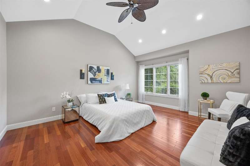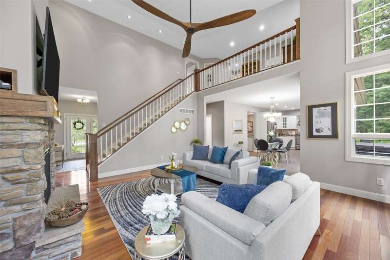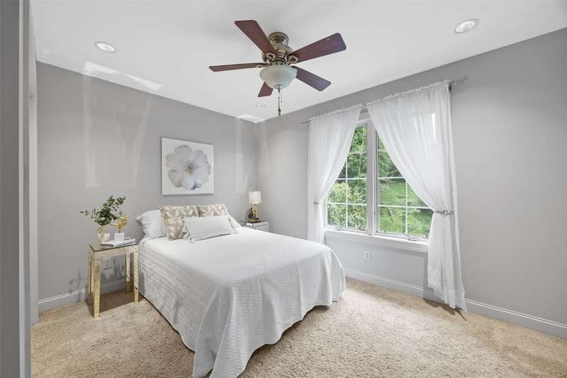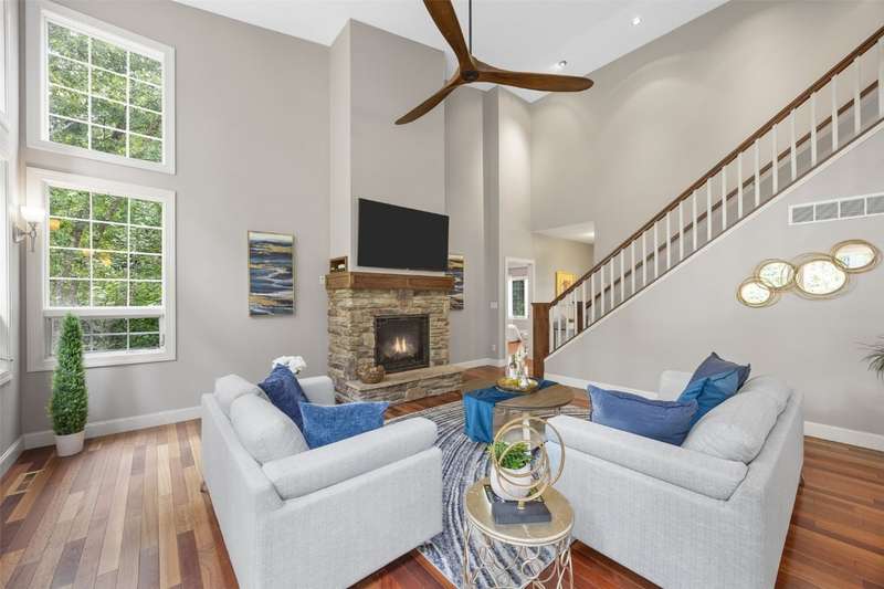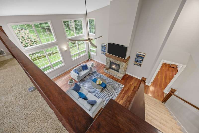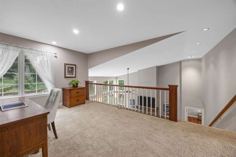 Step inside to a bright living room, where sunlight pours through the large windows and a cozy gas fireplace creates the perfect spot to relax. The bright kitchen boasts stainless steel appliances, including a 40" 5-burner range, and opens to the dining area for easy entertaining. The main-level primary suite features a large walk-in closet and private bath. Upstairs, a versatile lofted area provides space for an office, reading nook, or playroom. The lower level expands your living options with a generous family/rec room and additional flex spaces to fit your needs. Outside, enjoy a private backyard surrounded by mature trees, ideal for time in the hot tub, gatherings, play in the tree house, or quiet moments with nature. Tree house and retaining walls will remain AS-IS.