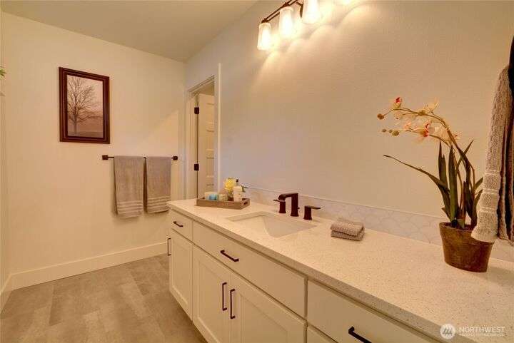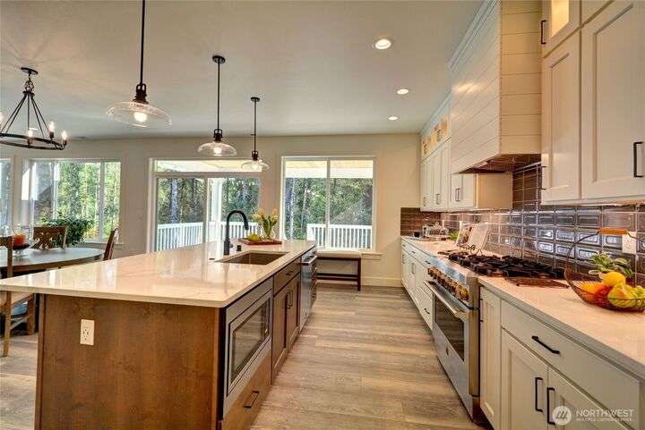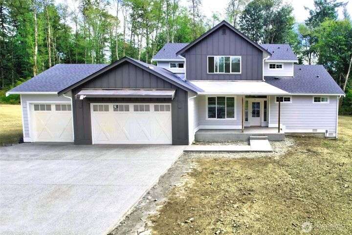 Exceptional New Primary on the Main Home, Level Acreage Lot! Quality built that brings pleasure to everyday living and good energy economic sense. 4 Bedroom 2.5 Baths, featuring timeless color palette & dark metal accents. A Polished Kitchen with luxury 6 Burner Cook-top, Generous Island, & Full height glass front Cabinets. Bright and Open Living space, Extra large windows for exception light. Separate Formal Dining room & Den. The Primary suite is a true oasis w/ gracious Primary bath boasting spa style with a modern flair. Secondary bedrooms are upstairs for added Primary bedroom privacy. Spacious covered outdoor living area to enjoy year round. Quick easy access, one mile to I-5 and minutes to shopping & entertainment.