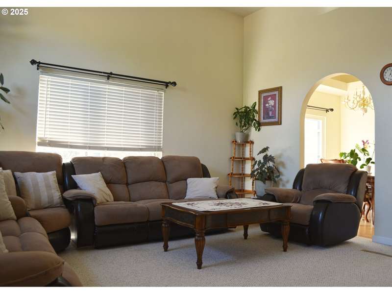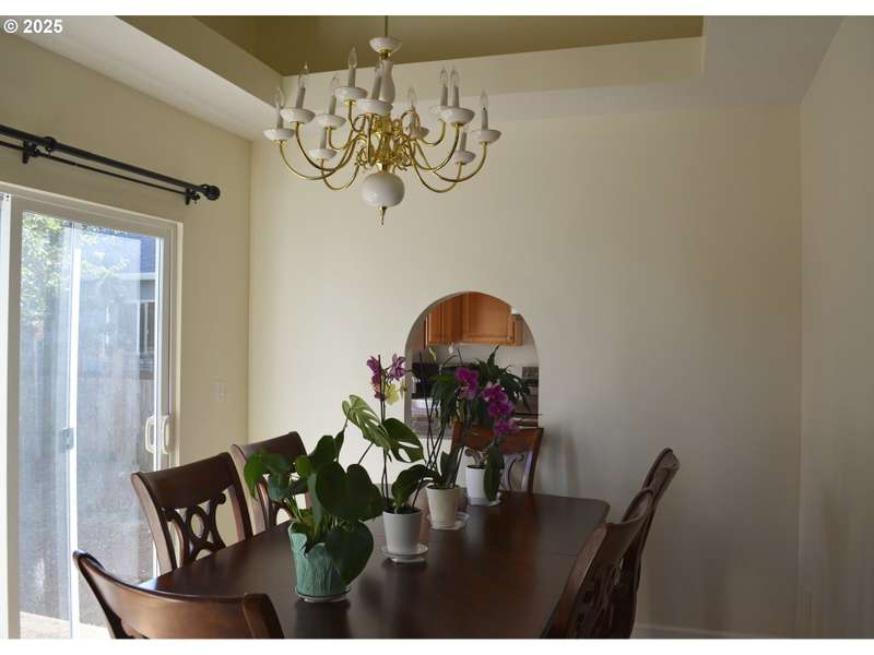 This beautiful home has inviting, open floor plan concept. Big Living room with high ceilings, arched window and lots of natural light. It opens up to Formal arched entry to a formal dining room, with slider to a patio in the backyard. Nice size Kitchen with tile floors, tile counters, eating area, large pantry and new SS appliances. Den is located off the kitchen. Upstairs features large primary vaulted bedroom with full Bathroom and walk in closet. Generous sizes of 2 other bedrooms with vaulted ceilings. New disposal, newer water heater, AC. Convenient location. Must see.