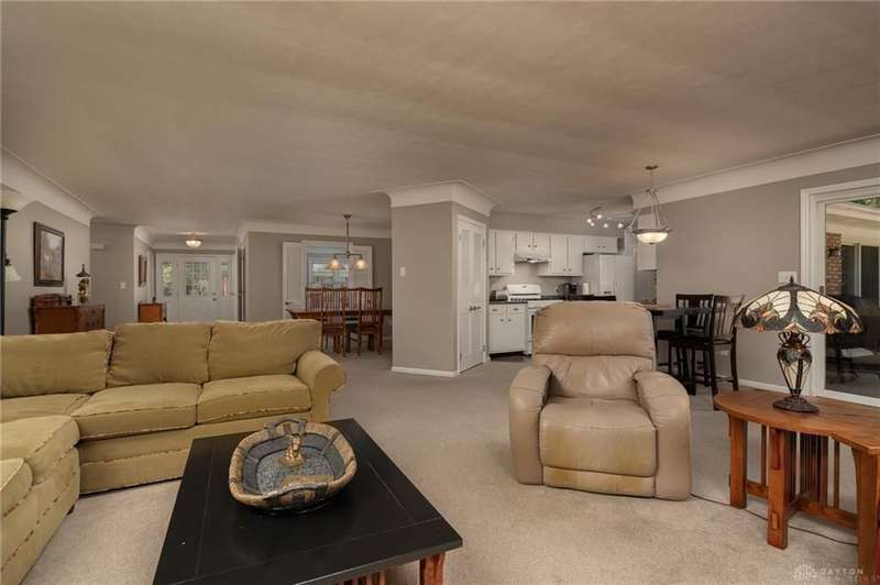 Spacious 4-Bedroom Home with Dual Garages & Versatile Floor Plan. This well-cared-for second owner home offers 2,684sf PPRC of living space and so much more than meets the eye. Set on a beautifully landscaped lot with manicured lawn and flowerbeds, the home welcomes you with a covered front patio and a large, inviting entryway. Inside, the dining room with built-ins flows seamlessly into the expansive family room featuring a gas fireplace, built-in sideboard, and sliding glass doors that open to the back patio. The galley kitchen includes all matching appliances, double pantries, and a window overlooking the yard. A spacious living room, a multi-purpose room with wet bar, and a convenient half bath provide plenty of options for entertaining and everyday living. The split floor plan includes a generous owner’s suite with double closets, dual vanities with seated makeup area, and a newer walk-in shower. Bedroom two is oversized with double closets, while bedroom three is comfortably sized with easy access to the hall bath. Bedroom four offers versatility—ideal for a home office, guest suite, playroom, or craft space—complete with washer/dryer hookups (W&D do not convey) and sliding glass doors to the patio. Outside, enjoy a fenced backyard, perfect for pets and gatherings. Along with the attached two-car garage, the additional detached one-car garage offers endless possibilities for storage, hobbies, or a workshop. This property combines space, function, and charm—ready for its next chapter. Call Doug Brand 937-307-9370