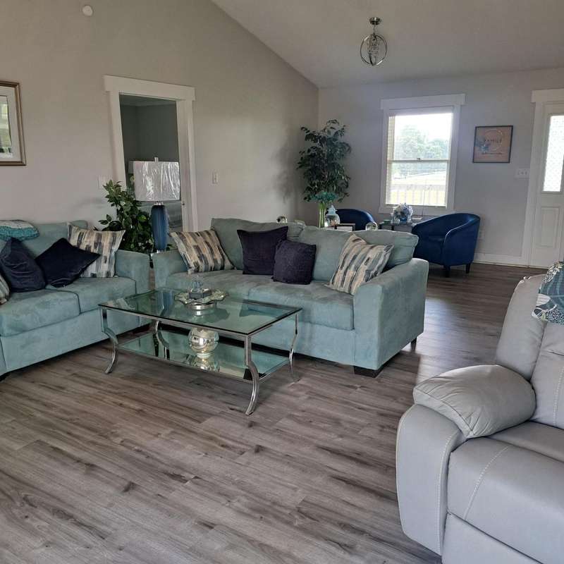 Beautiful Country Setting! Yet only 5 minutes from area shopping and businesses. This 3 bedroom offers split floor plan with 2 full baths. Large Living Room with gas fireplace. Open Kitchen and Dining area. New floor coverings throughout the whole house. Newly updated bathrooms, and a bonus room/ office. New heat and Air conditioner replaced in December 2024. Newly Painted throughout also in 2022. This home offers Handi=Cap accessibility with 2 ramps from the outside. Outside it has a large detached garage/ workshop Metal build. All this that sits on almost 2 acres of beautiful land. Fenced in area in the back yard for dogs or pets.