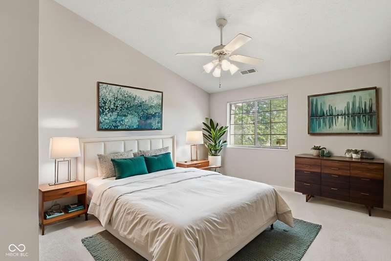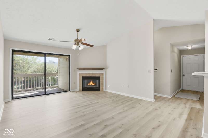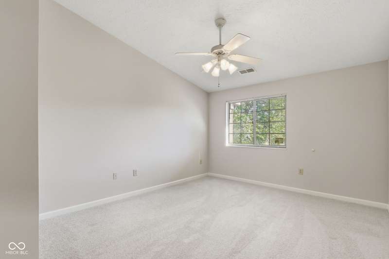 Check out this condo in lovely Lenox Trace! Home has been freshly painted throughout. All new LVP flooring and new carpet. Second floor location offers added privacy, cathedral ceilings, and fireplace. Enjoy the pond view in the back featuring 2 fountains. One of the best views in the community! This unit comes with garage #105 right across parking lot. Also reserved parking space #131 right in front. There are several guest parking spots in front of this building. Enjoy this well maintained community with an excellent location to everything Carmel has to offer.