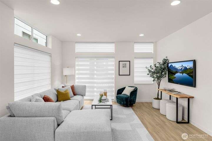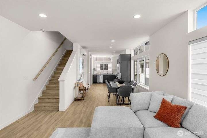 The newest phase of the popular community of Willow by Shelter Homes. This first release is a 1793 sq ft. courtyard access home w/ two bedrooms, a full bath, & utility room on the entry level. A spacious second floor w/ large living, dining, & kitchen spaces as well as a 1/2 bath. Stainless appliances, window coverings, fantastic storage & more. The third floor holds both the primary bedroom & a 4th bedroom-easily a nursery, office, or workout room. The top level boasts a private roof deck complete w/ gas, perimeter lighting, water spigot & outlets. In the alley is the deeded parking spot - EV-capable! Area spots inc. Soundview Playfield, Baker Park, Golden Gardens, & dining/shopping, inc. Met Market, w/in a few blocks.