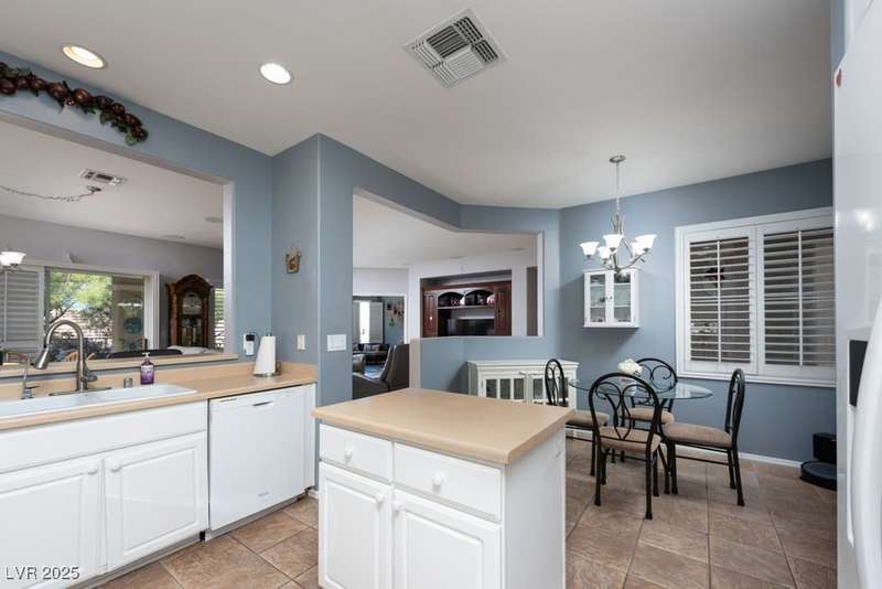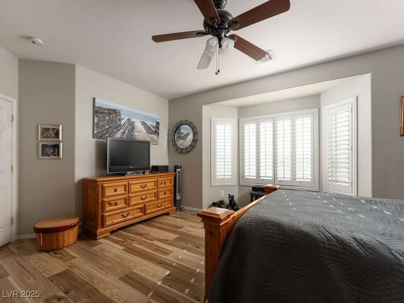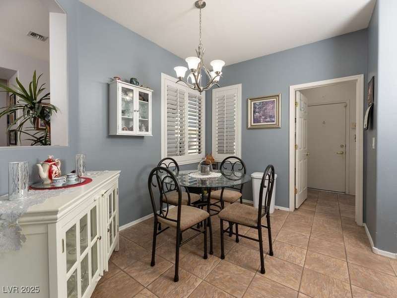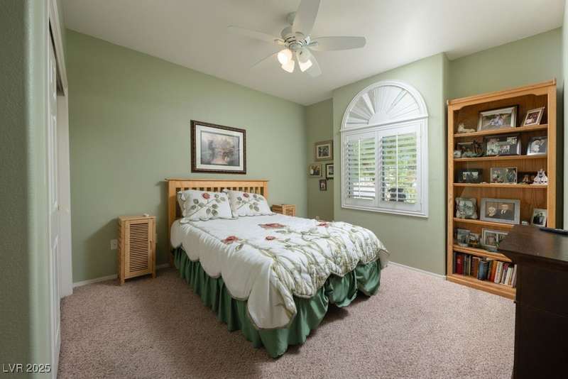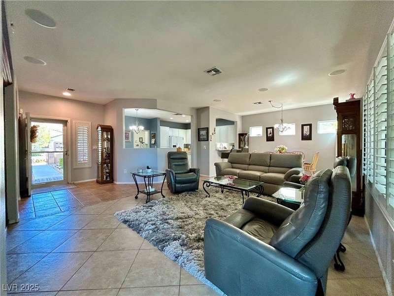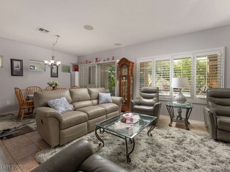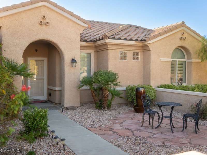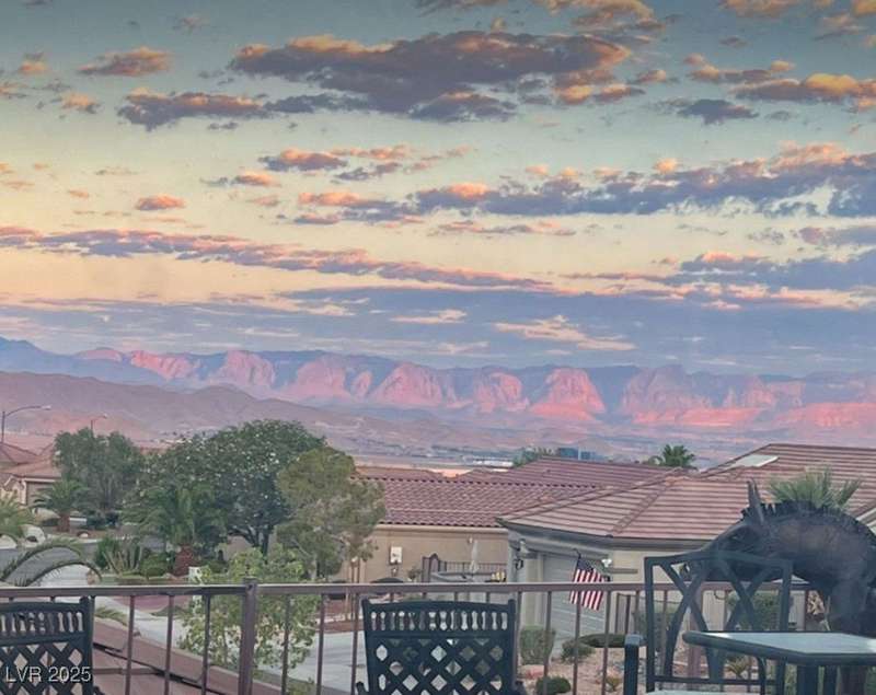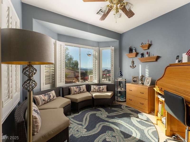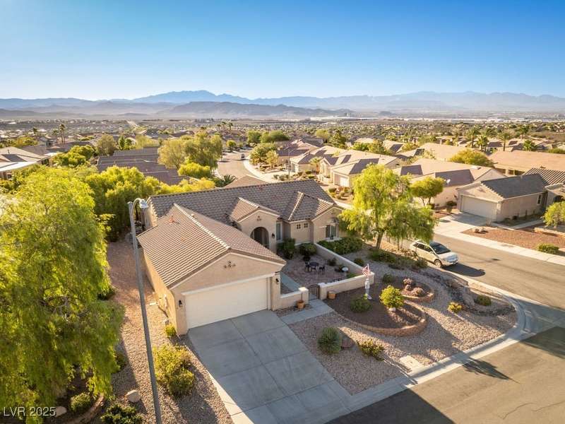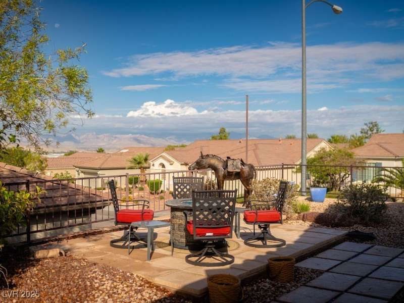 This Patriot model is set on an elevated corner lot, offering backyard privacy and breathtaking mountain, city, and sunset views. An inviting courtyard entry enhances the curb appeal, while the extended covered patio provides the perfect outdoor living space. The 1,715 sq. ft. open-concept floor plan features 2 bedrooms and a den just off the family room, ideal for a home office or flex space. Bay windows in the primary bedroom and den capture the stunning views, while beautiful plantation shutters frame the scenery and fill the home with natural light. The primary suite has engineered wood flooring, dual sinks, a separate soaking tub and shower, and a large walk-in closet for ample storage. The timeless white kitchen offers a breakfast nook, center island, lots of cabinet space, and all appliances stay. A separate formal dining area and living room feature a built-in entertainment center and surround sound, creating a great entertaining space.