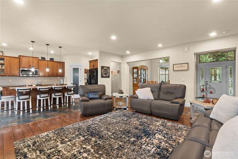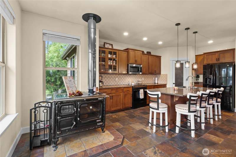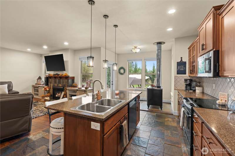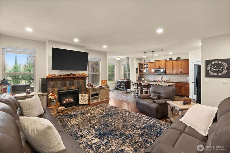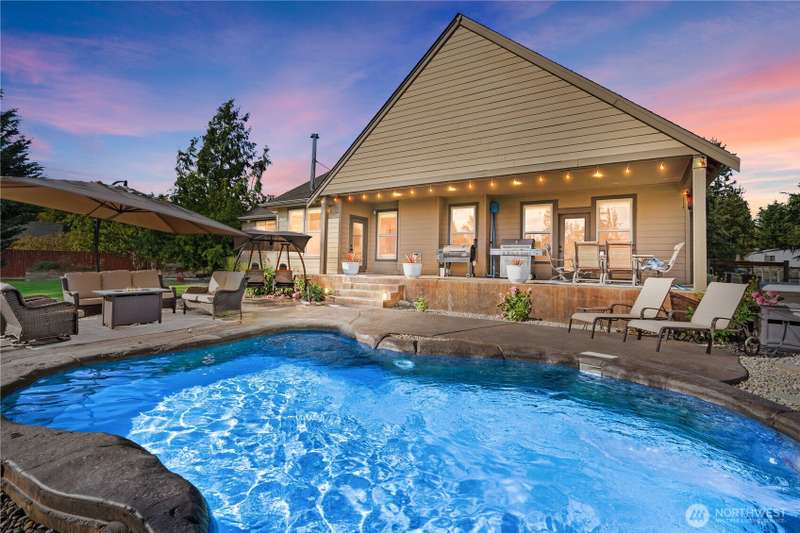 Turn-key rambler on 2.03 acres with gated entry. This 1,971 sqft home offers 3 beds, 2 baths, plus an office/den. Great room features a cozy wood stove & gas fire, while the primary bed includes a walk in closet & 5 piece bath. 3 car garage provides ample storage. Outdoor living includes stamped concrete, pool with slide, hot tub, fire pit, & a covered patio for entertaining. Property is fenced & professionally landscaped with outdoor lighting. RV parking adds convenience, while a large powered barn offers boarding income potential plus a powered shed for storage. Usable acreage makes this property ideal for equestrian, recreational, or country living. A rare opportunity that blends comfort, functionality, & lifestyle in a peaceful setting.