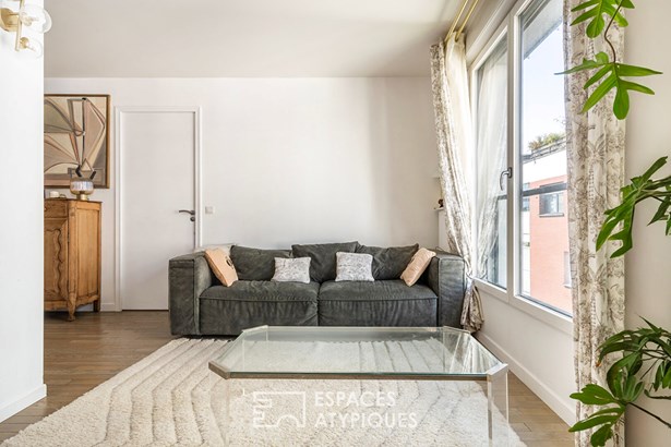 Located on a pedestrian street at the foot of Parc Francois Mitterrand, on the fifth and penultimate floor with elevator, this recent 85.42 m2 (Carrez law) apartment boasts three terraces with views.
