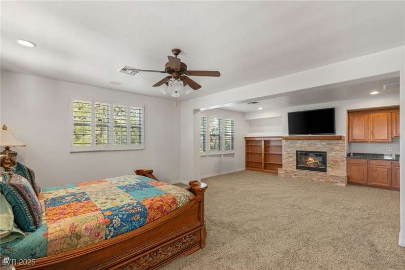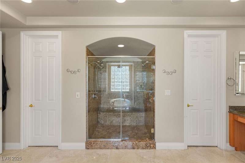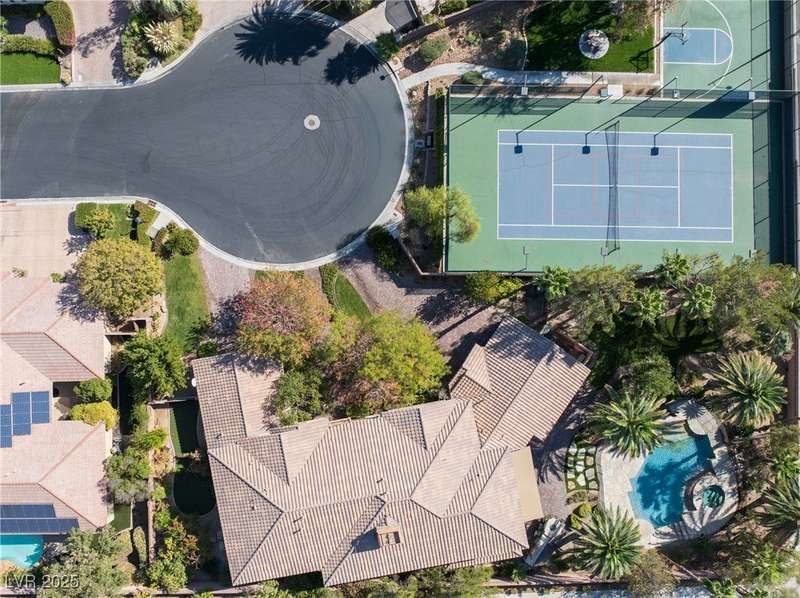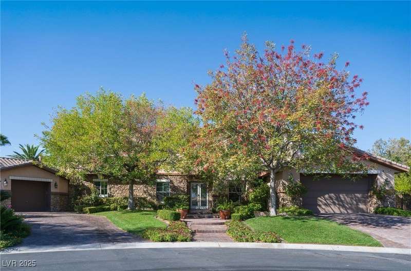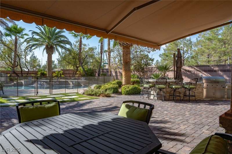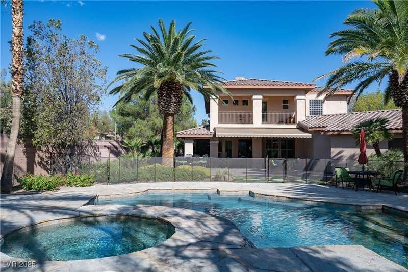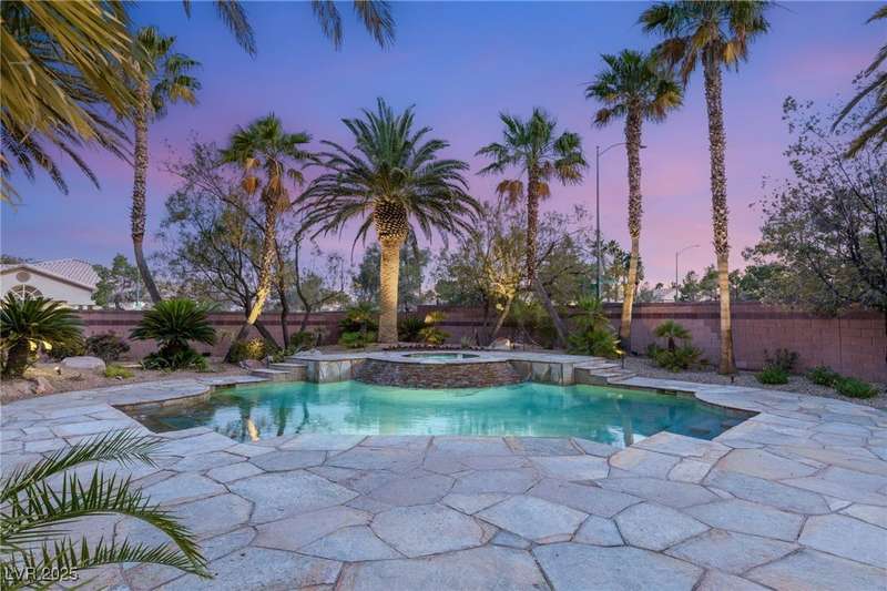 Nestled in the prestigious Section 3 gated community, this custom estate sits on over half an acre and offers the perfect blend of privacy, luxury, and resort-style living. The home features four spacious bedrooms, a dedicated office, and a thoughtfully designed open layout ideal for both everyday living and entertaining. The oversized primary closet provides abundant storage and can easily be converted into a fifth bedroom, additional office, or private den. Step outside to your own backyard oasis with a sparkling pool, spa, and lush landscaping. Enjoy exclusive community amenities, including private tennis and basketball courts. Located just 10 minutes from Summerlin and 20 minutes from the Las Vegas Strip, this rare gem offers luxury living in the heart of the city.