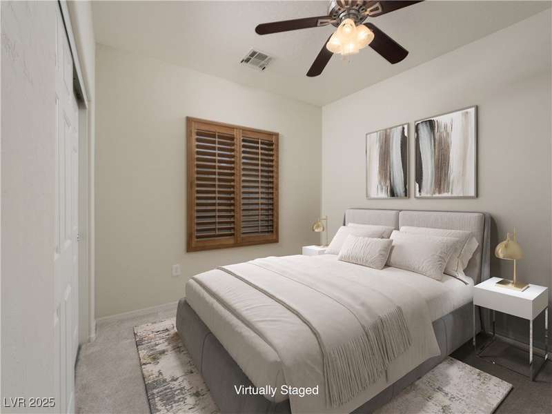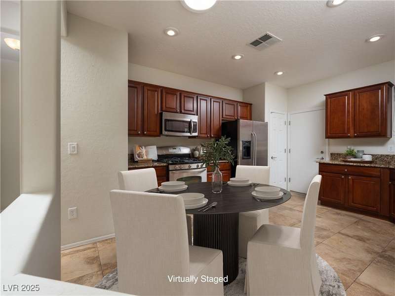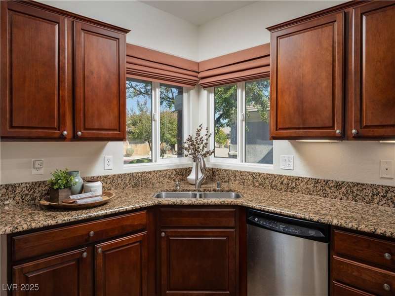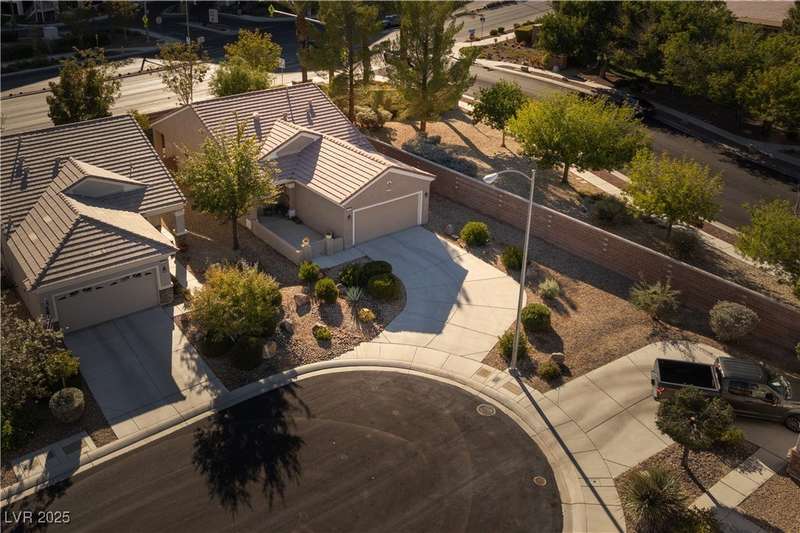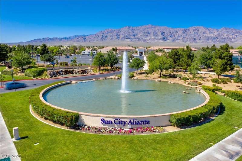 WELCOME HOME to this charming single-story residence in the premier 55+ community of Sun City Aliante. Tucked away on a peaceful cul-de-sac, this home impresses with its fresh landscaping, gated courtyard, and wonderful curb appeal. Inside, the open-concept great room flows seamlessly into the stylish kitchen and cozy dining nook—perfect for everyday living and entertaining. The well-designed floor plan features two bedrooms and two baths, offering comfort and functionality throughout. Step outside to a private backyard oasis with a covered patio and mature landscaping, creating your ideal retreat. Notable upgrades include solar screens, stainless steel appliances, and custom window treatments. Enjoy resort-style living with easy access to Sun City’s top amenities: golf course, clubhouse, pool, spa, tennis, pickleball, plus nearby shopping, dining, and entertainment!