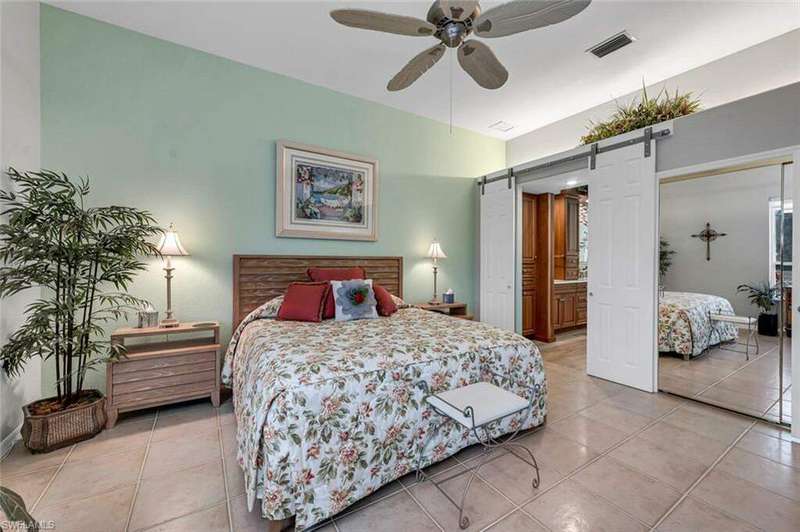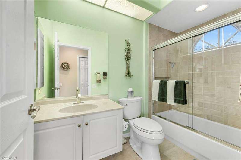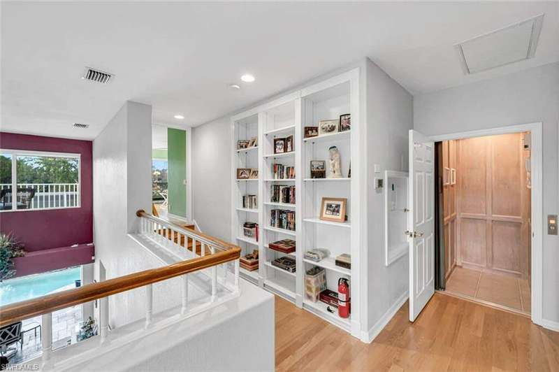Truly unique and rarely available "Aberdeen" with an additional bonus room ensuite! This is the largest version of this in demand floor plan in The Strand. Impressive, spacious detached villa home boasting a newer roof (2019), power storm protection on the lanai, dedicated golf cart garage bay, and spectacular Western water and golf course views. The property features four true bedrooms, with one being a grand bonus room ensuite. There is also a den with built in shelving, and a large loft space. This home is one of very few in the community with its own private elevator!! There's also a glamorous tiled open terrace area off of the second-floor bonus room overlooking the pool and view. You'll quickly fall for this stately property with no home immediately to the left. It is the first home on Persimmon Way, and boasts large windows on the Southern side of the home, allowing the home to be beautiful and bright throughout the day. The rear sliders pocket into the living room wall for a feeling that the living space extends seamlessly outdoors during our beautiful winters. The entire pool area/outdoor space has been extensively updated. The pool decking and pool coping match nicely. The outdoor cabinetry has been updated to create a fresh and bright look. Enjoy an active country club lifestyle, complete with 3 beautifully maintained 9-hole golf courses, tennis, pickleball, all new fitness center, and an impressive pool with lap lanes, newer bocce courts, as well as a recently added croquet center and Island Bar for residents to enjoy. The clubhouse next door to the Jr. Olympic pool houses two upscale restaurants: one upstairs, and the downstairs Tavern 59 restaurant opens into botanical garden/outdoor wedding venue location. The Strand is a golf cart friendly community, and has recently added more dedicated golf cart parking spaces near to the 4 new brand new pickleball courts. Many shopping and dining conveniences are within close proximity, and most importantly, the sugar sand beaches of the Gulf are a straight shot westbound down Immokalee Rd.
