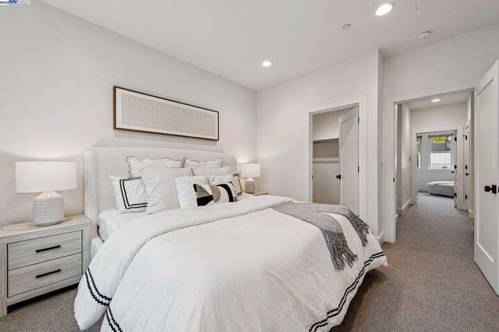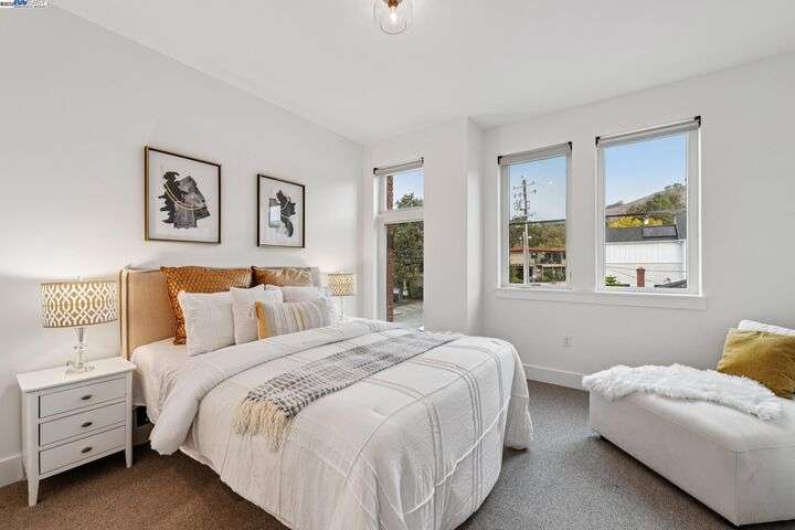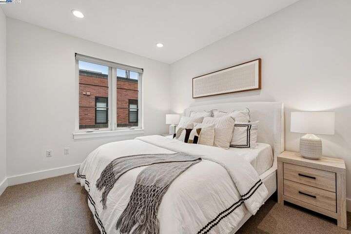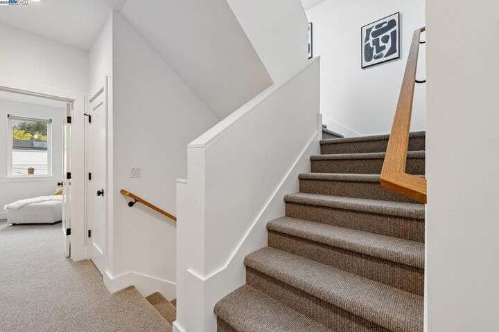 Experience modern luxury & everyday comfort at The Mill on Brown, one of Lafayette’s most desirable newer communities. Built in 2022, this beautifully designed townhouse-style condo offers 2 bedrooms, 2.5 baths, a dedicated office or flex room (possible 3rd bedroom), an attached 2-car garage & a private rooftop deck with panoramic views. The main level features an open & airy floor plan w/spacious living & dining areas, a sleek modern kitchen, laundry, office & 1/2 bath. Upstairs are 2 ensuite bedrooms, including a luxurious primary suite w/his-and-hers walk-in closets & a stylish bathroom. The kitchen impresses w/custom white oak cabinetry, quartz countertops, stainless steel appliances, a gas range, farmhouse-style sink, beautiful backsplash & built-in wine storage. Designer touches include wide-plank engineered hardwood floors, smooth-finish walls, modern lighting, remote-controlled custom shades & energy-efficient dual-pane Andersen windows. Additional highlights: tankless water heater & a garage pre-plumbed for an EV charger. Enjoy the best of Lafayette living—just steps from popular restaurants, brewery, cafés, shops, Whole Foods. Near Lafayette Reservoir, hiking trails, BART, freeway & top-rated schools. Convenient, contemporary living in a charming suburban setting!