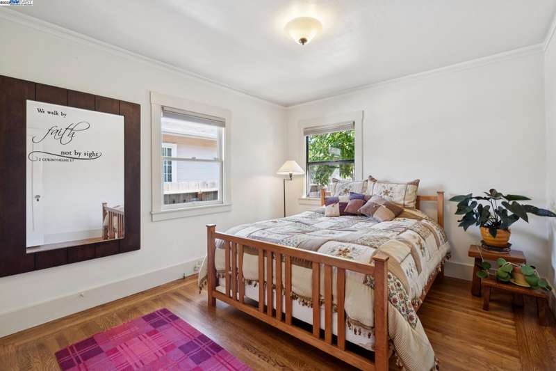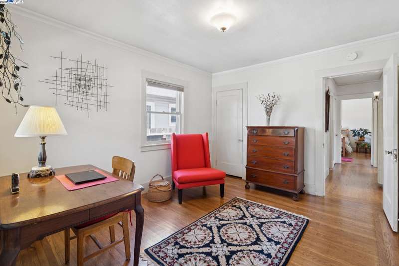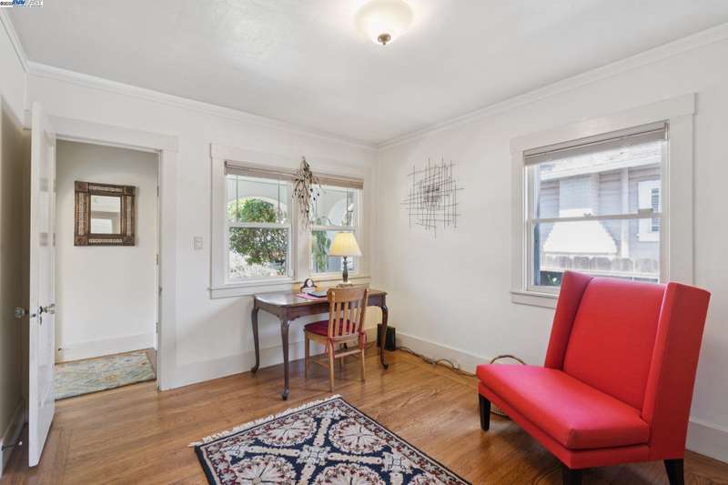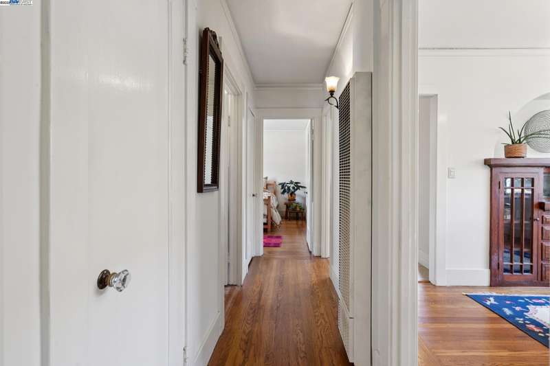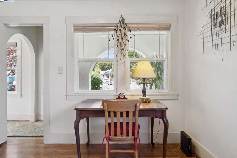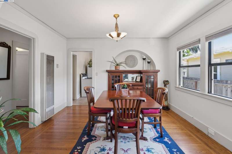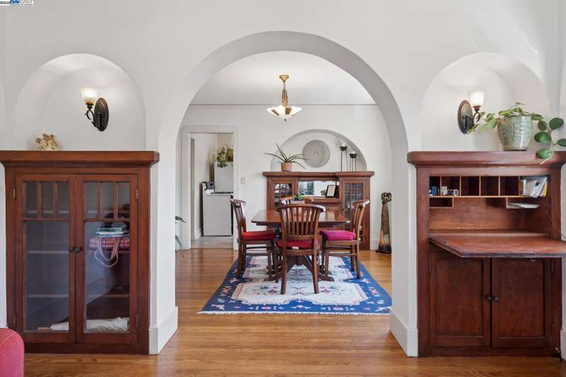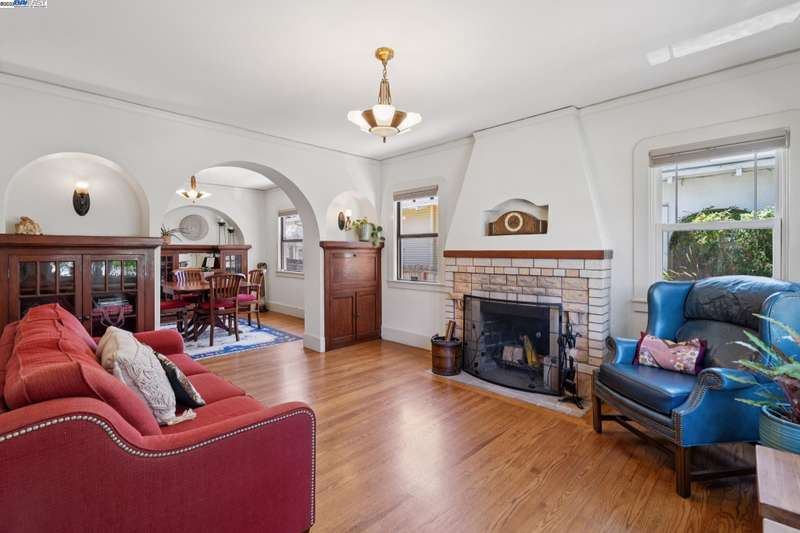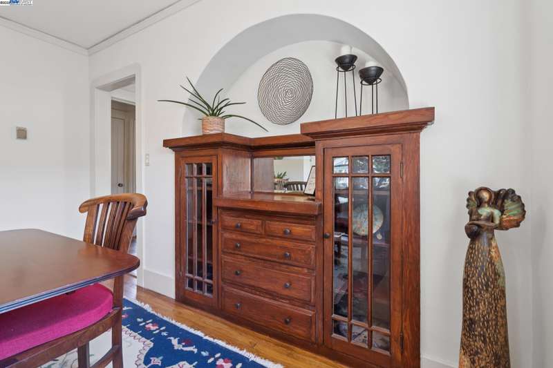 First time on the market in 23 years! Welcome to this sunny, bright, and magnificently maintained Craftsman home with stunning gardens front and rear. The home boasts of many original Craftsman details preserved as they were installed in 1925. Note the beautiful fireplace with intricate design, the built-in desk and cabinet in the living room, the built-in cabinet in the dining room, the original door hardware, and the authentic white oak hardwood floors throughout the home. A spacious kitchen opens to a sun-filled breakfast room, and the updated bath features a full-sized shower. Walking outside the back door, you enter a gardener's paradise which the long-time owner has cultivated into a beautiful space with many mature plants, seating areas, and an irrigation system. Lots of closet space in the bedrooms and hallway, laundry room with a generous pantry, plus a 1-car garage, make this home easy to live in. Convenient to I-580, Hwy 13, Mills College, Maxwell Park, and the Laurel Shopping district.