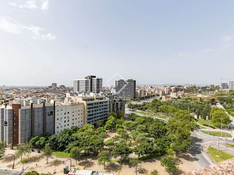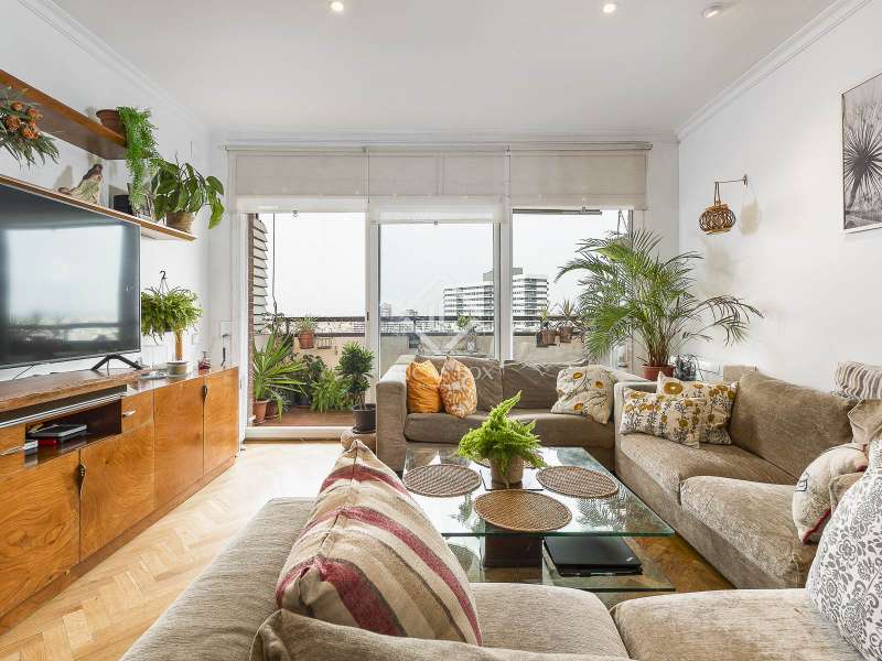 Discover this magnificent duplex penthouse located on the top floor of a modern building, strategically located between the Real Club de Polo, Camp Nou, and the university district. The property offers a constructed area of 210 m² and 72 m² of outdoor space surrounding the property, offering unbeatable panoramic views of Barcelona. Located on the 10th floor, the building offers a concierge service, private security, garden areas , and a communal pool. The completely exterior property features multiple balconies and terraces that provide light and a natural atmosphere. On the main floor , we have 127 m² of built area and 15 m² of terraces. The day area consists of a spacious and bright dining room living room with direct access to the terrace, a separate kitchen with a laundry room area, and four bedrooms, two of which have access to the terrace and one of which is en suite with a private bathroom. The upper floor offers a multipurpose space of 83 m² and a 56 m² terrace, ideal as an study, reading room, or creative studio. This level houses a bedroom with a dressing room, an open bathroom with a shower, and access to a spectacular L-shaped terrace. This spacious exterior area offers a variety of settings: a chill-out area, a barbecue area, or an urban garden . A perimeter corridor surrounds the property, offering unique views. As for the quality, the penthouse has wooden floors, air conditioning with splits and ducts, mains gas heating with radiators, and two parking spaces included in the price.