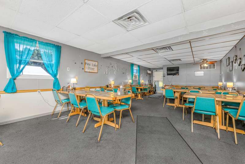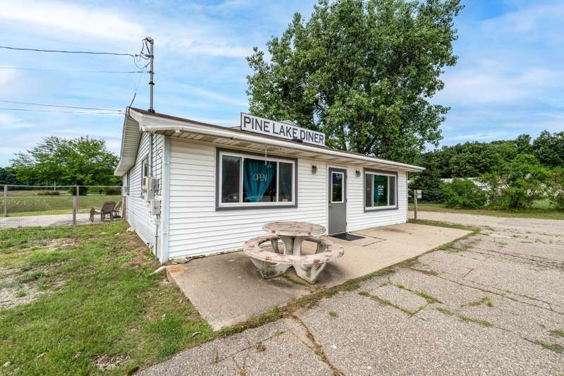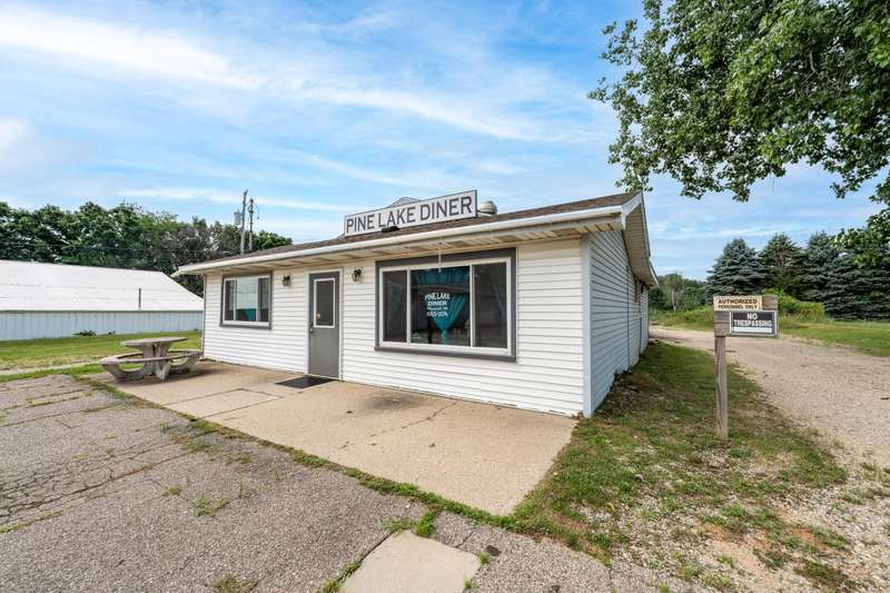 Don't miss this rare opportunity to own a cozy, well established diner located directly across the street from beautiful Pine Lake along with a spacious pole barn located on 3 acres. This small but mighty eatery offers unbeatable visibility and steady local and seasonal traffic. The property offers incredible potential for a variety of ventures.The sale includes major kitchen equipment, giving you a head start on turning your restaurant dreams into reality. With a welcoming layout and loads of potential, this property is ideal for a passionate owner-operator or investor looking to bring fresh energy to a beloved location. Whether you're starting new or expanding your portfolio, this gem is read to serve! Adding to the property's appeal is a substantial pole barn, offering flexible space for storage, workshops, or potential conversion for other business needs. With 3 acres of land, there's significant room for outdoor dining, events, or future development, providing endless possibilities.