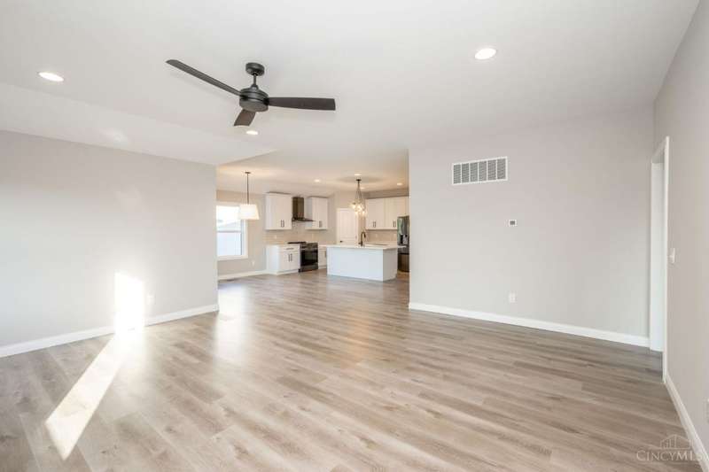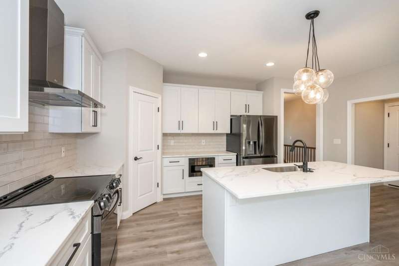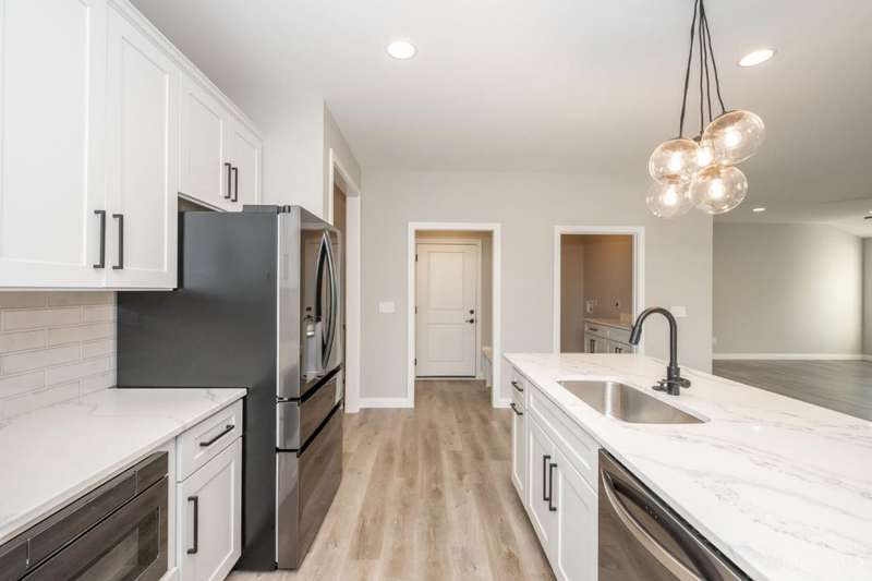 Gorgeous new construction home in Falcon Meadows! Ultra convenient single story house appointed with luxury finishes. Bright and airy open floor plan with 9 foot ceilings throughout, luxury vinyl plank floors and gas fireplace. First floor also features a spacious laundry room equipped with utility sink and an oversized two car garage. Gourmet eat-in kitchen with island, quartz counters, 42 inch wood cabinets, range hood and pantry. Enjoy the outdoors on your large covered deck directly off of your main living space. Wonderful primary bedroom w/ a luxurious en-suite full bathroom and a massive walk-in closet! The lower level offers additional finished living space with a huge unfinished storage area. Full walkout basement allows you to step right out to a back patio and your backyard. Just minutes away from the booming downtown Hamilton business district!