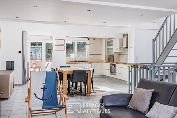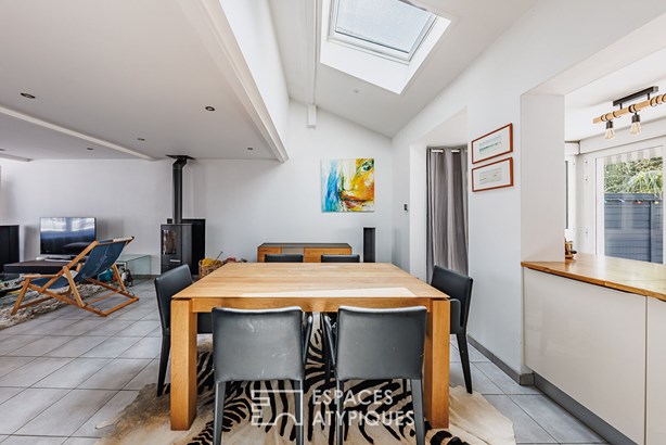 Developed on three levels, this atypical house seduces from the entrance with its unexpected layout and its fluid connection with the outside. Access is via a landscaped courtyard on the street side, with a discreet bicycle storage room, ideal for everyday soft travel.