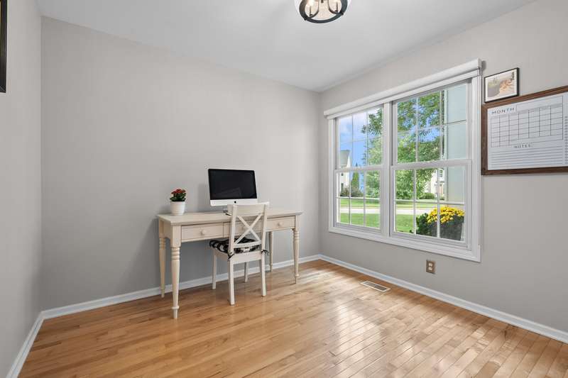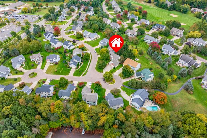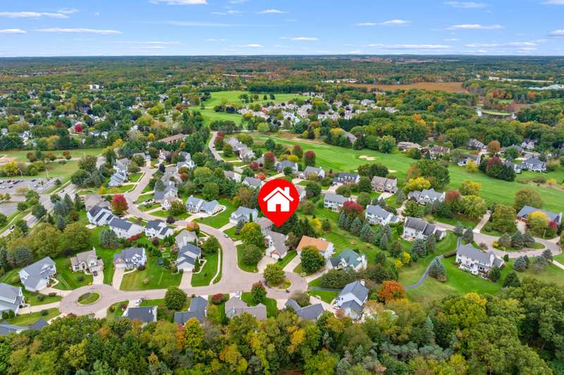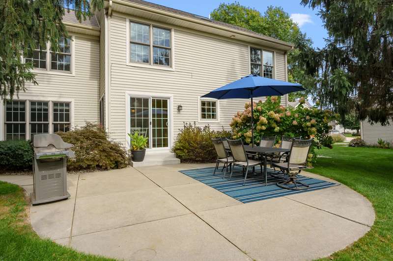 OPEN HOUSE SUNDAY 11/9 from 12:30-2. Enjoy modern comfort and convenience in this beautifully updated 4-bedroom, 2.5-bath home tucked on a quiet cul-de-sac in Portage's coveted Woodbridge Hills! Step into the thoughtfully designed bright and flowing floor plan featuring a home office, formal and casual living spaces, cozy family room with fireplace, dine-in kitchen with newer stainless appliances and recently remodeled powder and laundry rooms. Upstairs, retreat to a spacious primary suite with walk-in closet and 5 piece ensuite, complemented by 3 additional bedrooms and another full bath. The finished lower level provides a large family room, fitness area, and ample storage. Outside, relax in a professionally landscaped yard with mature trees and a private patio perfect for entertaining. With an oversized three-car garage and major updates-including a new roof (2022), HVAC (2021), water heater and RO system (2024)-this home perfectly blends elegance, functionality, and peace of mind.