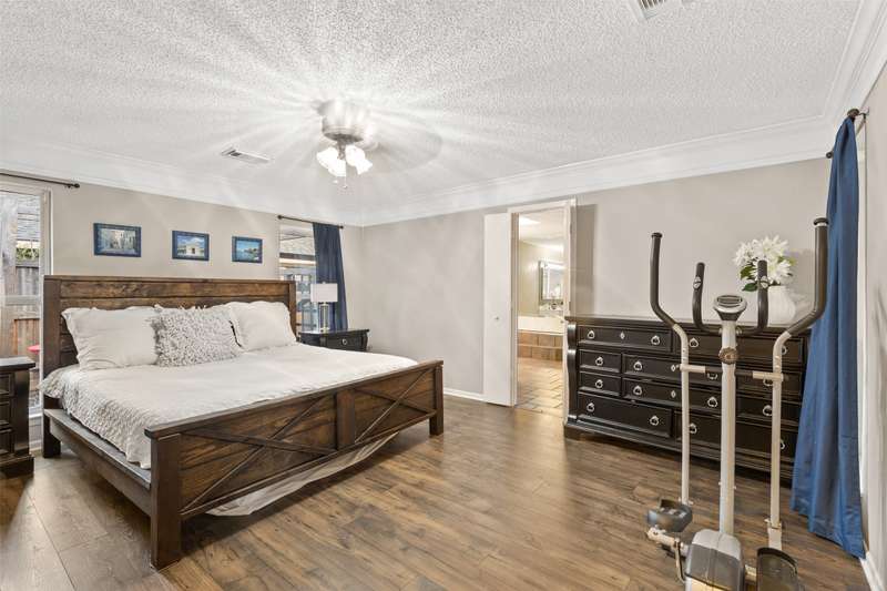 Fabulous home in College Park East! This house has a flexible floor plan, 4 bedrooms or 2 masters, or 3 bedrooms and a game room the possibilities are up to your imagination and needs. Beautiful pool with 2024 update to pebble tech plaster finish, new coping, and in 2023 a new filter and pump installed. The pool has a spa and jets are located in the smaller area of the pool. Luxury laminate flooring installed in 2021 to the main living area and spacious master bedroom. The dining room has views through the sunroom to the pool and is open to the main living area. The kitchen has a breakfast bar, and can accommodate a breakfast table and chairs. The half bath is located near the sunroom for easy access to and from the pool. The laundry room is oversized and has plenty of room for additional shelving for a pantry or an additional refrigerator or freezer or extra storage space for bulk items. Come take a look at this flexible floor-plan! Motivated Seller! Bring All Offers!